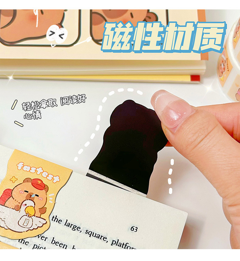 Capibala 모양의 자기 책갈피 귀여운 capybara 자기 책갈피 학생 양면 독서 페이지 클립 도매