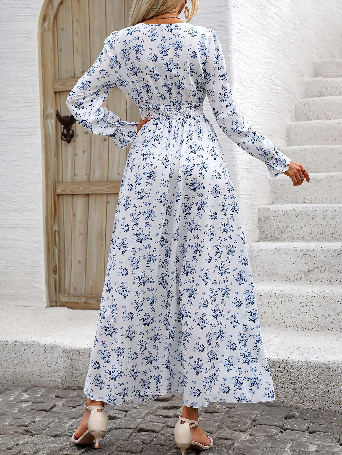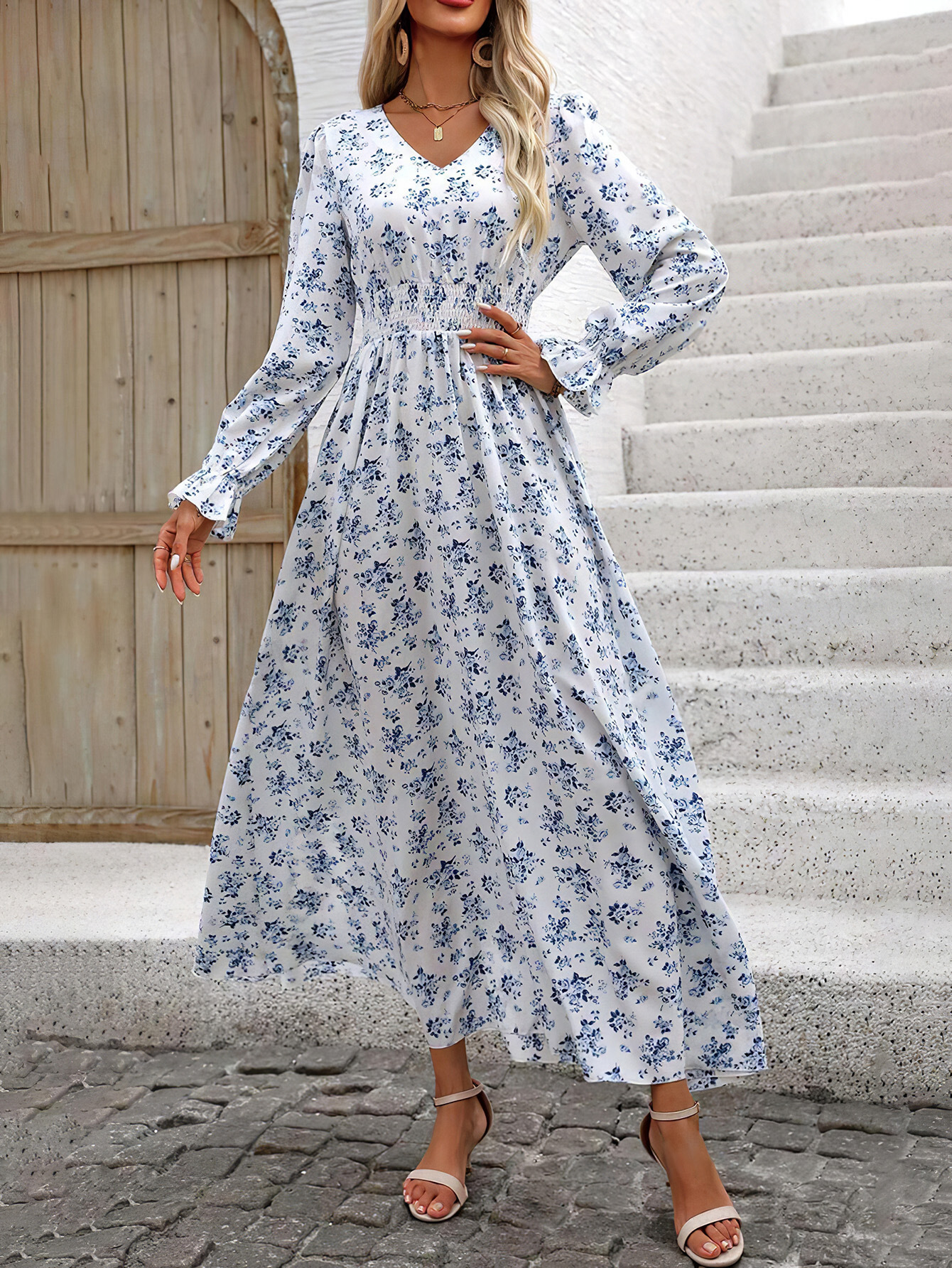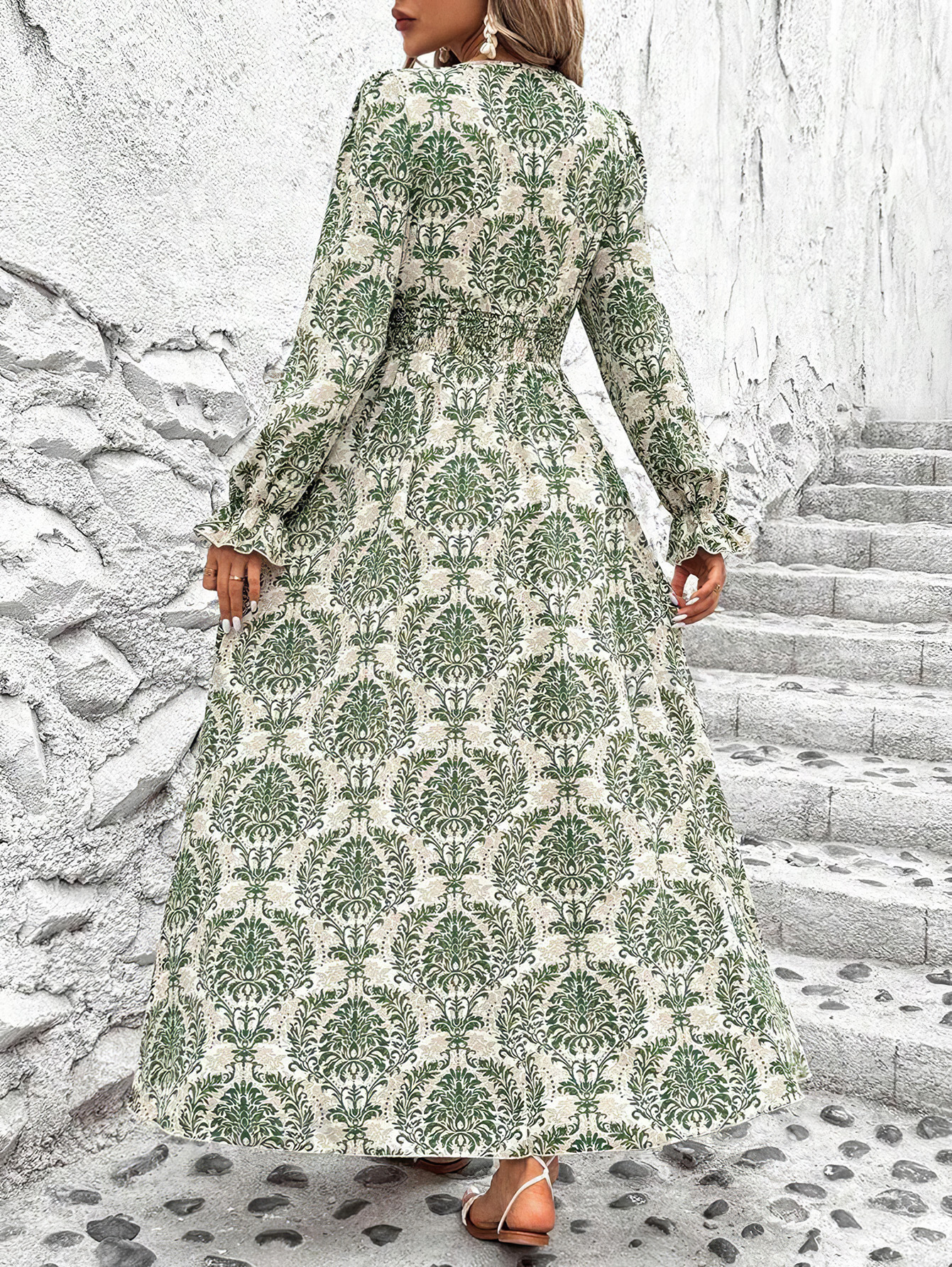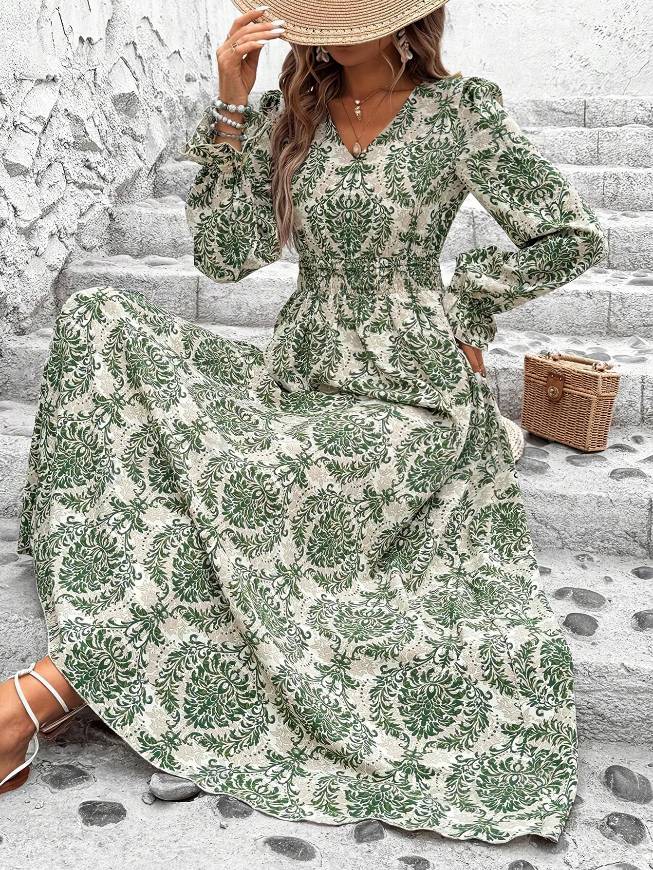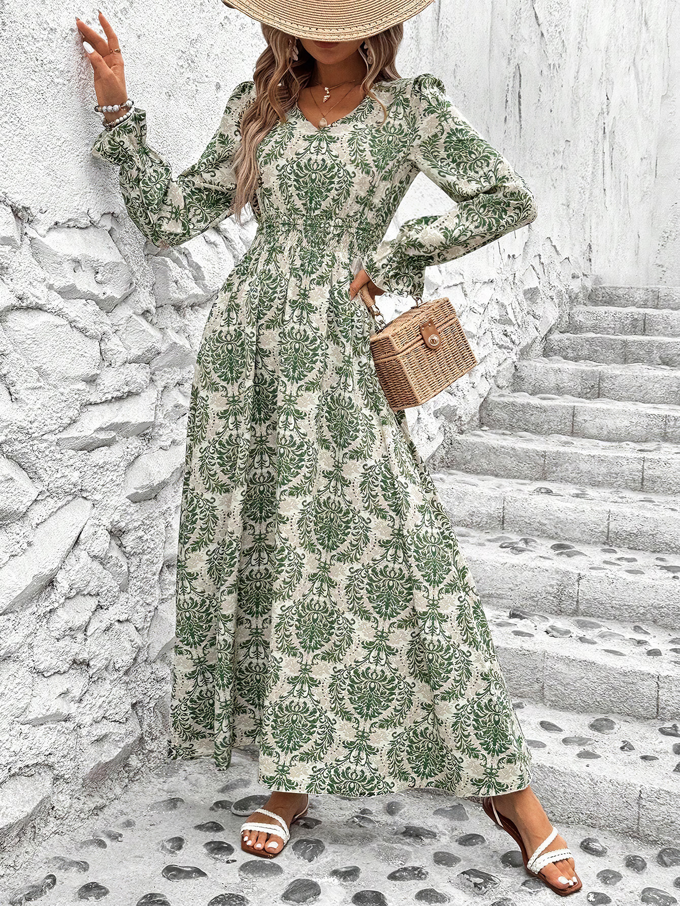 국경 간 대외 무역 유럽과 미국 여성 의류 2024 아마존 가을 패션 인쇄 원피스 V 넥 긴 소매 원피스