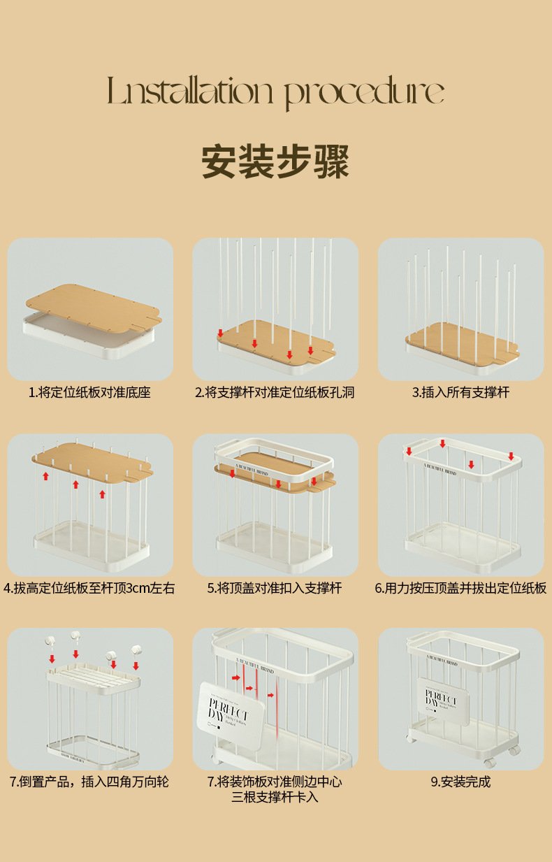 • 수납바구니 기본크림 컬러 (파이프스테인리스 내추럴 컬러)