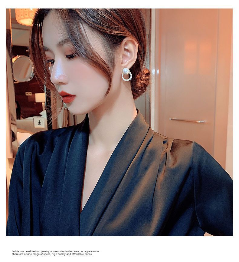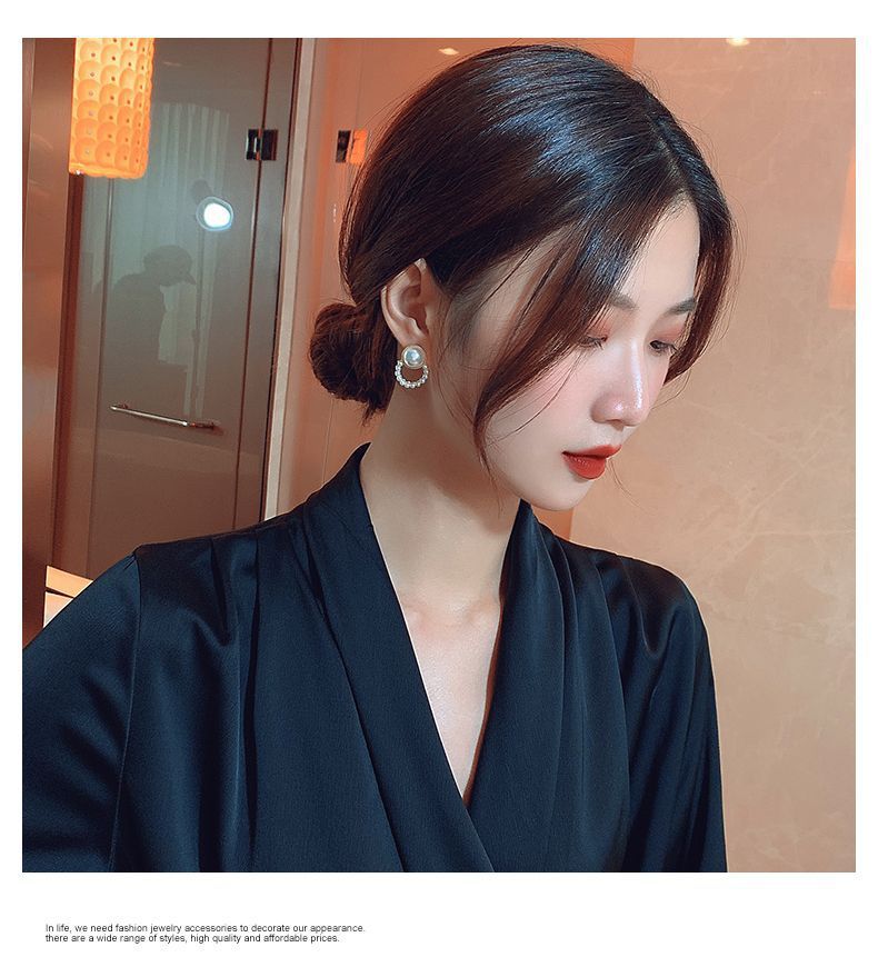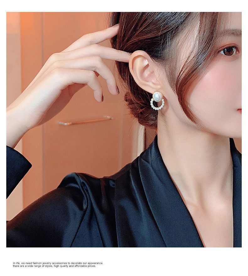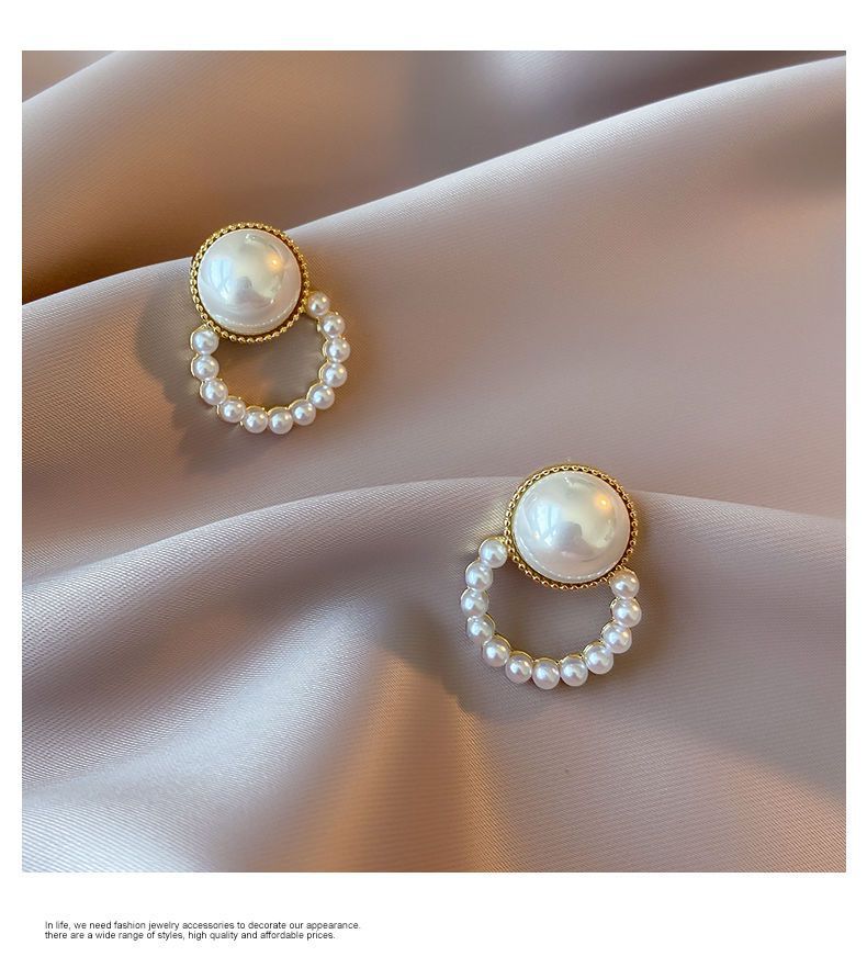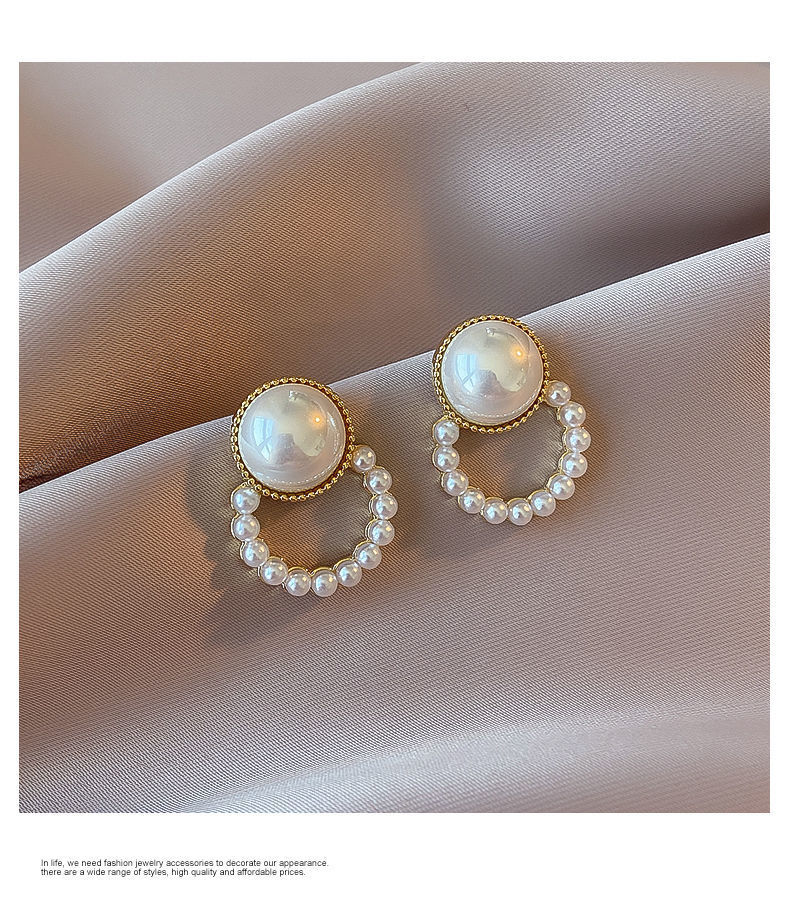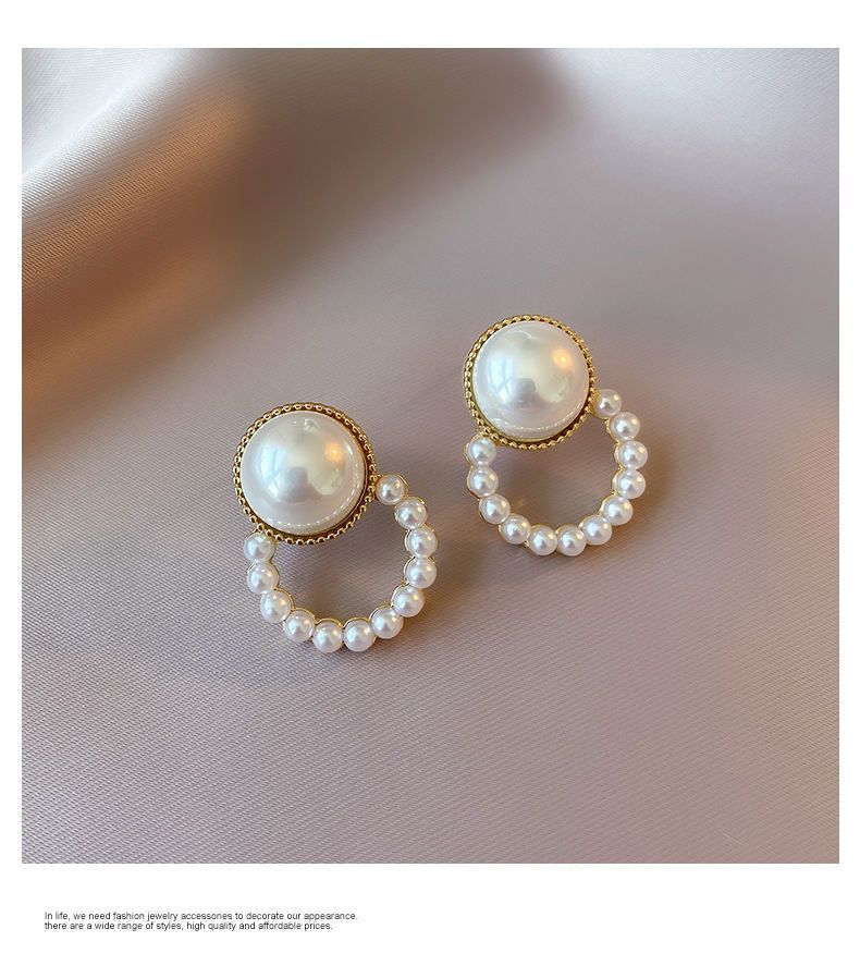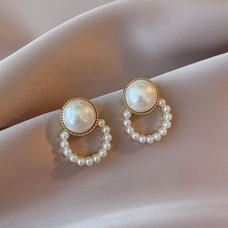 합금 모조 진주 귀걸이 라운드 구슬 귀걸이 2024 새로운 패션 한국 기질 그물 빨간 귀걸이 여성스토어 가기