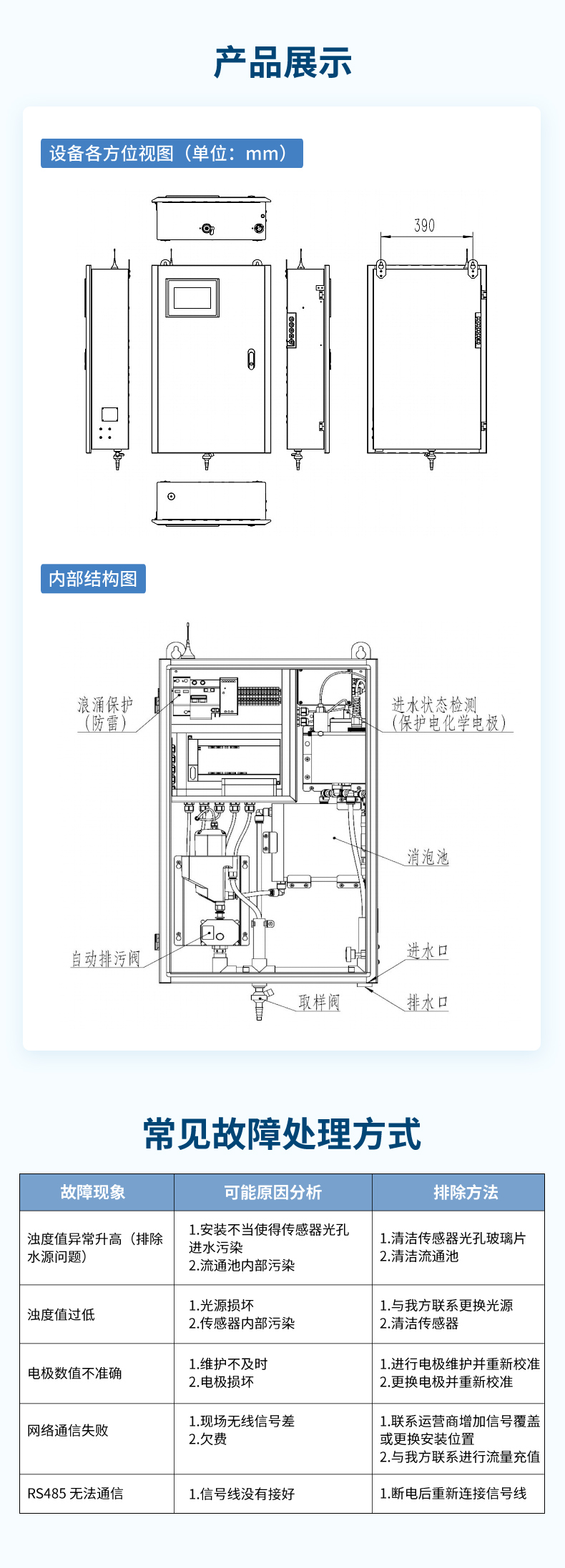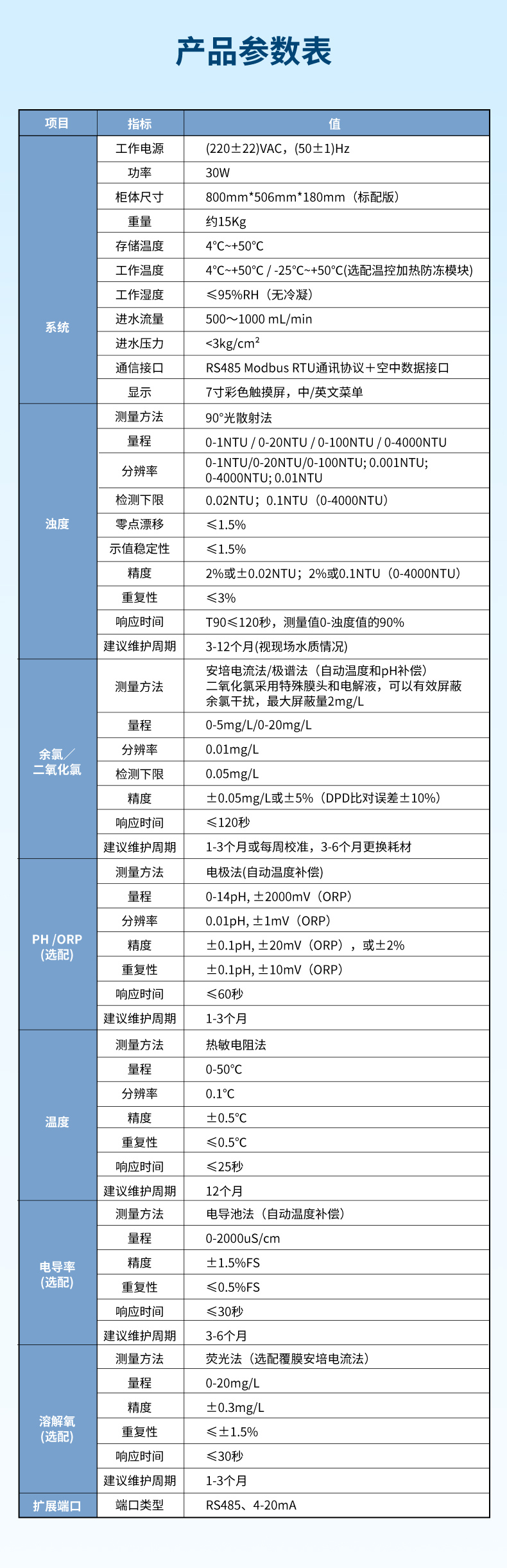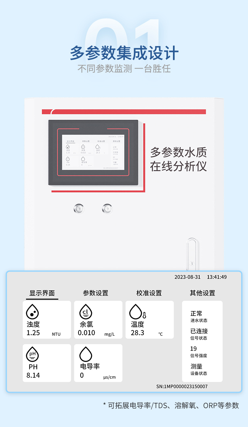• [세 가지 매개변수]: 탁도, pH, 온도 스테인레스 스틸 소재