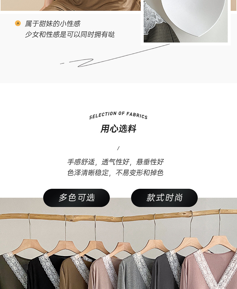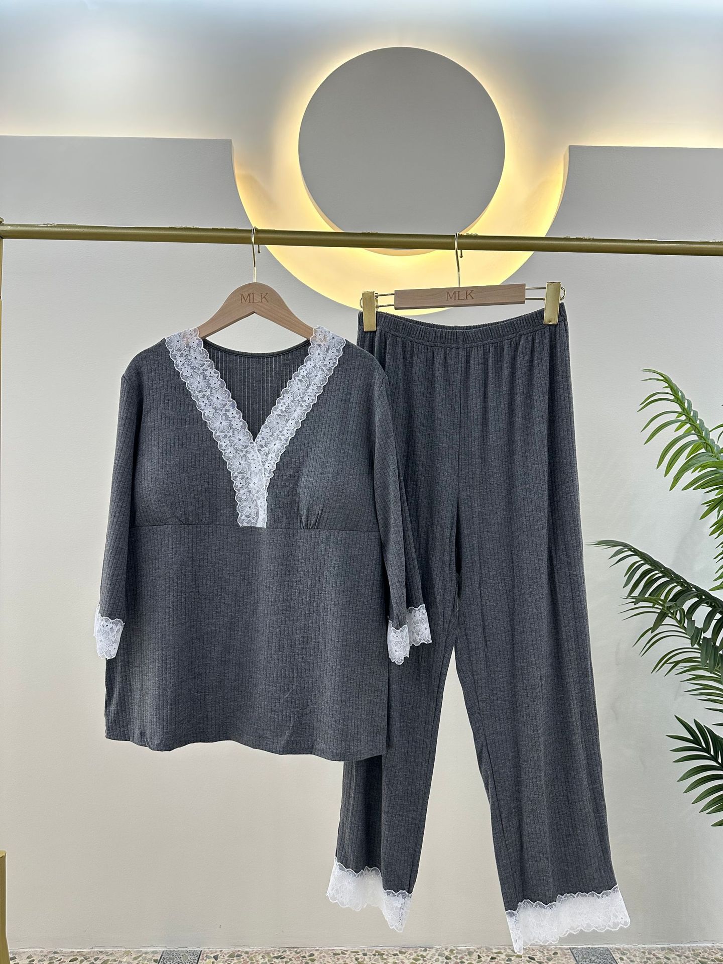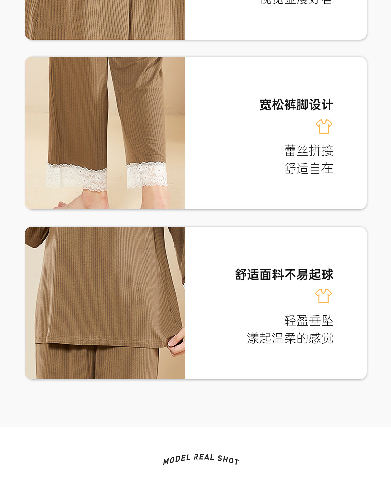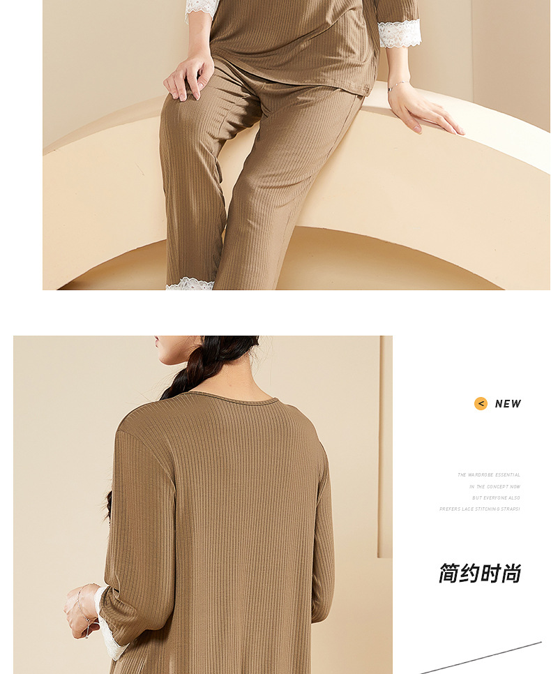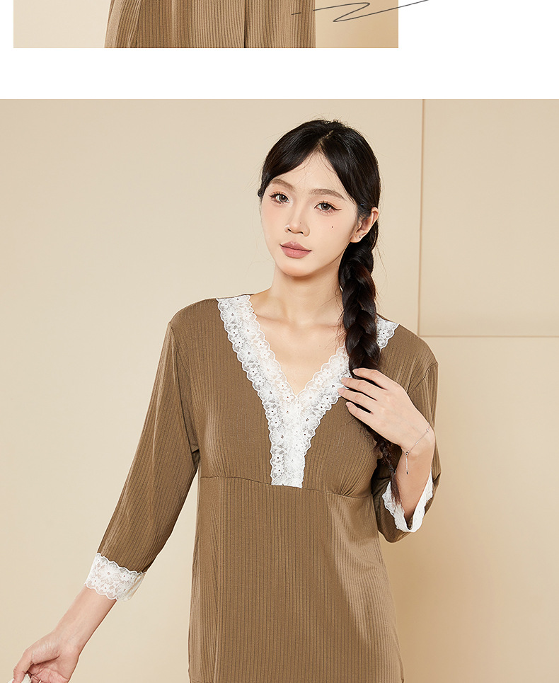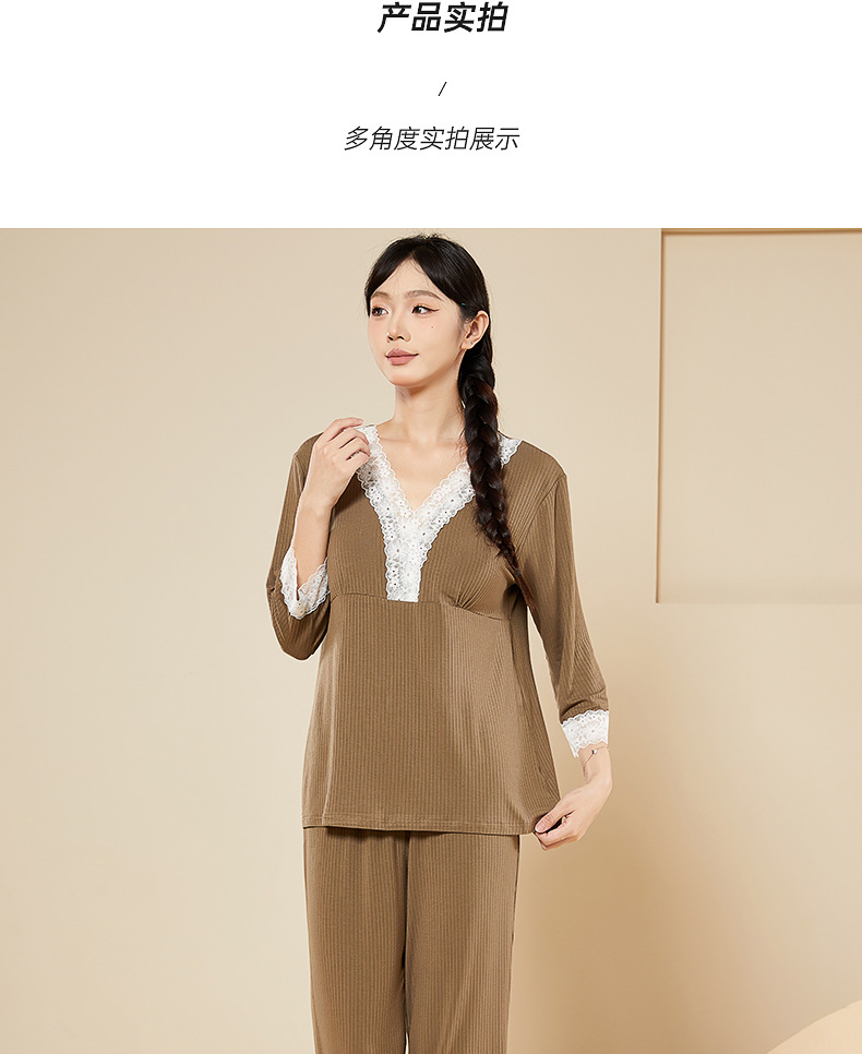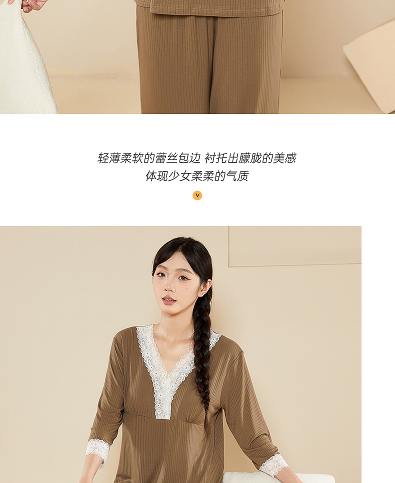 플러스 사이즈 여성 홈 의류 잠옷 세트 소녀 스타일 레이스 V-넥 잠옷 세븐 슬리브 가을 느슨한 잠옷