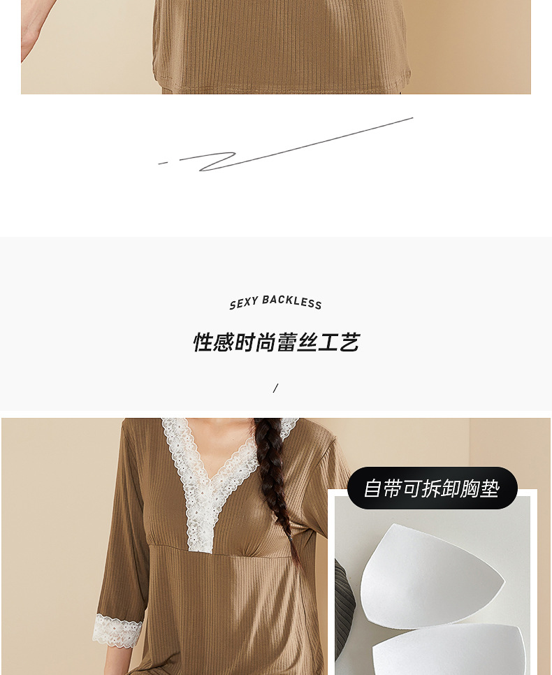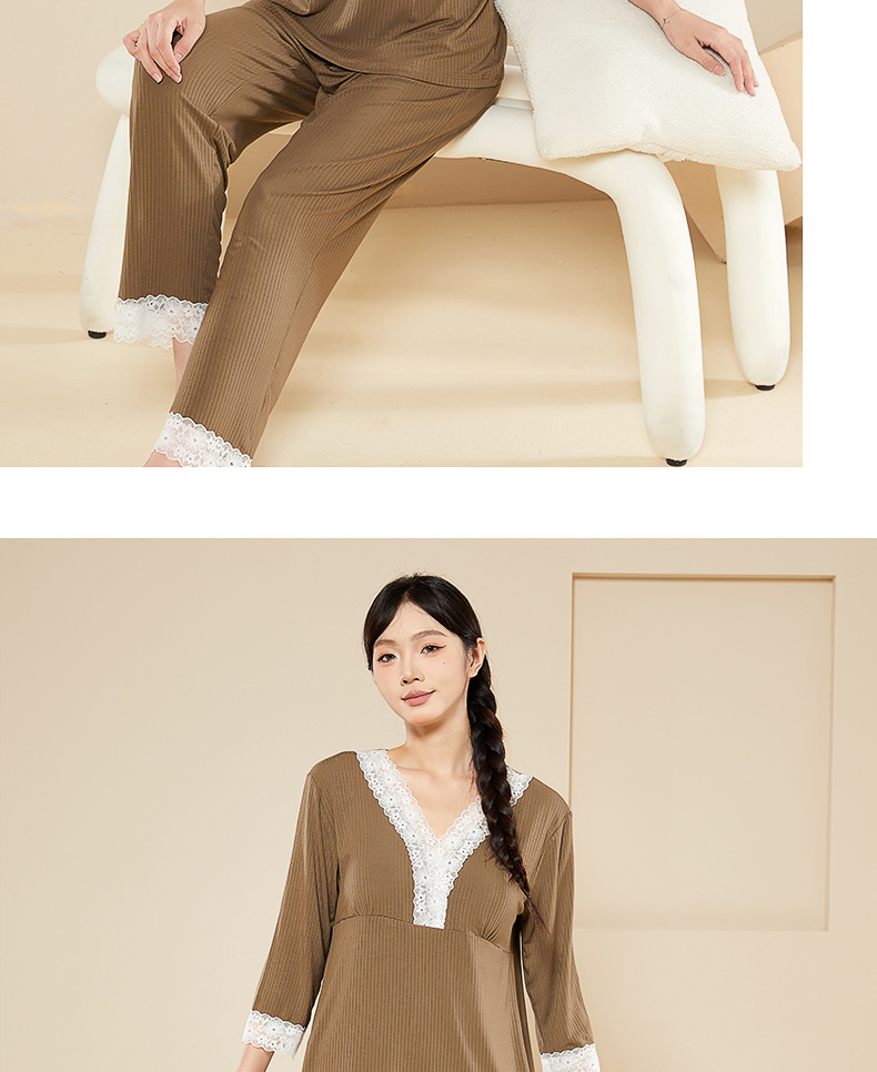 플러스 사이즈 여성 홈 의류 잠옷 세트 소녀 스타일 레이스 V-넥 잠옷 세븐 슬리브 가을 느슨한 잠옷스토어 가기