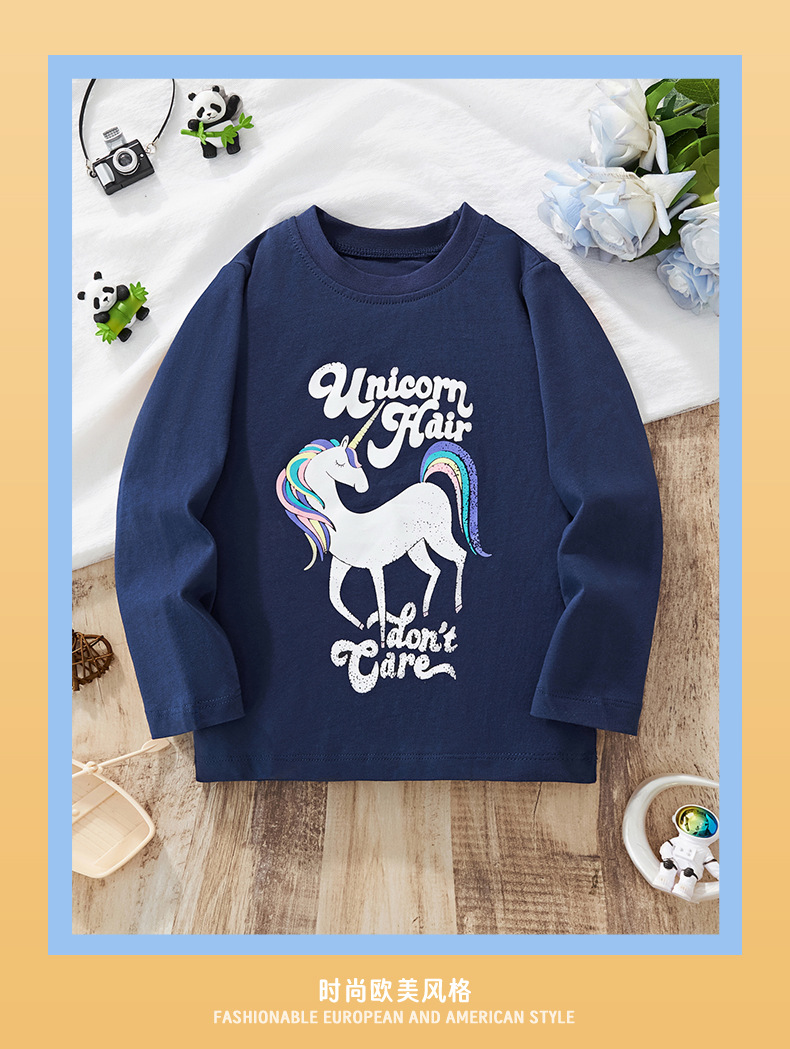 가을과 겨울 2024 긴 소매 면 티셔츠 아동복 만화 조수 팬 프린트 티셔츠 소년 소녀 어린이 헤어 세대