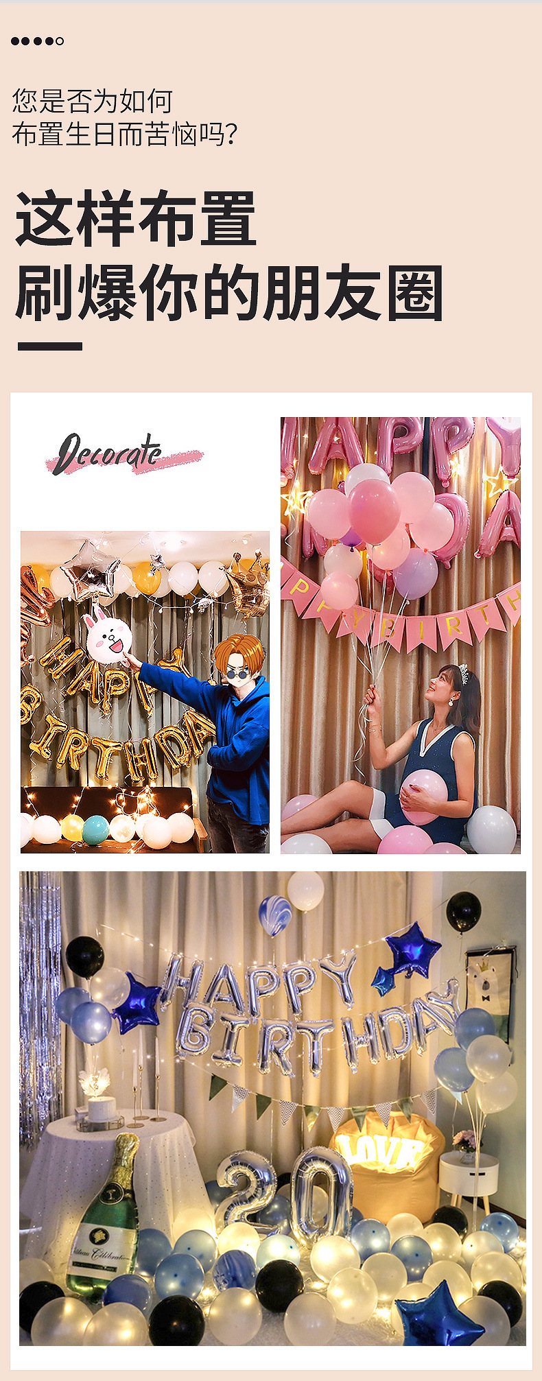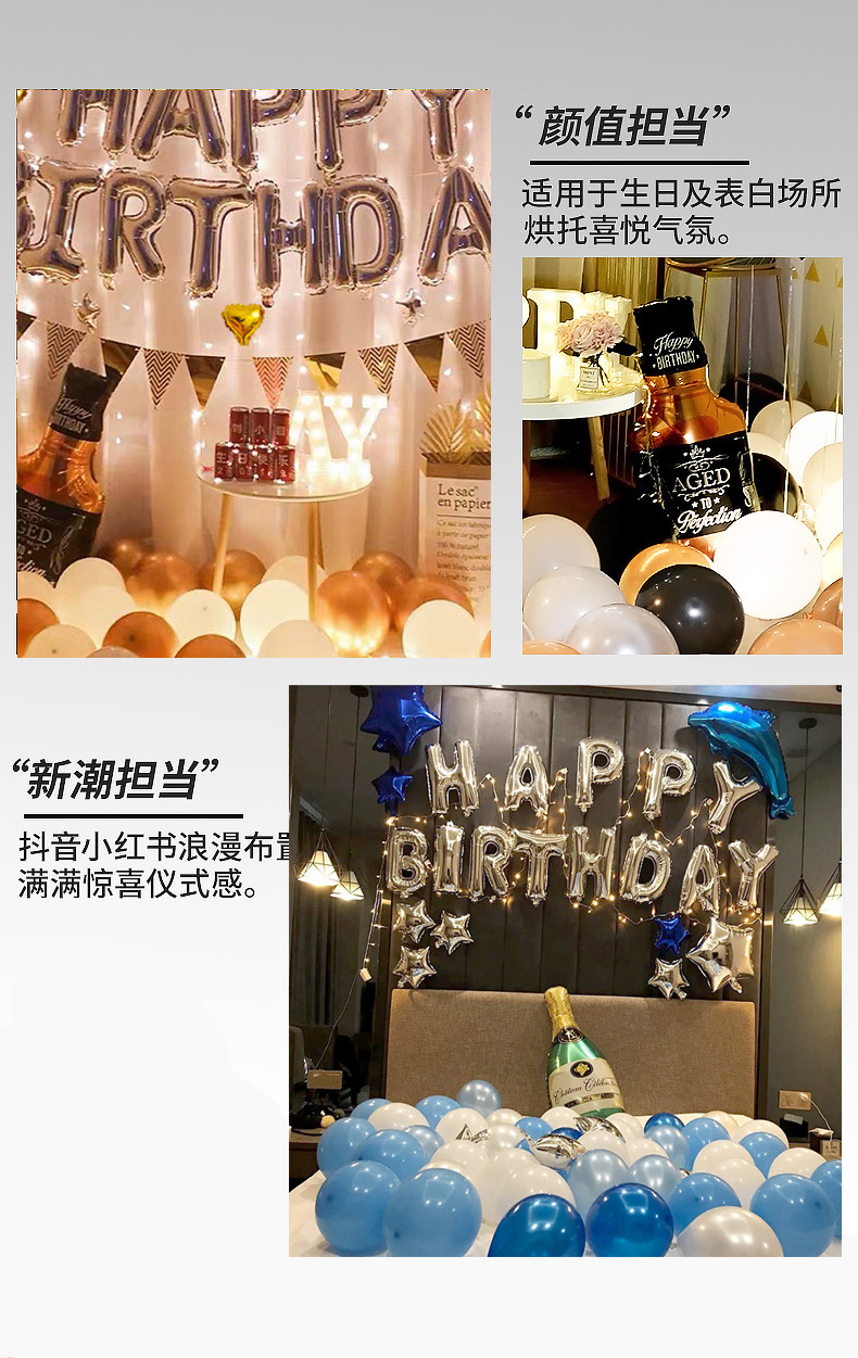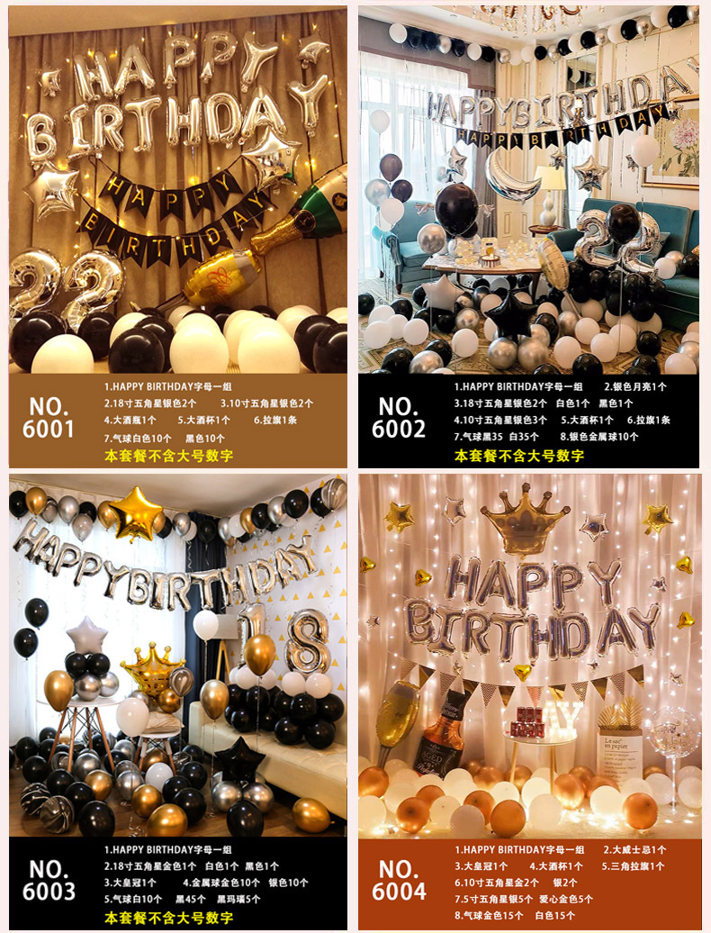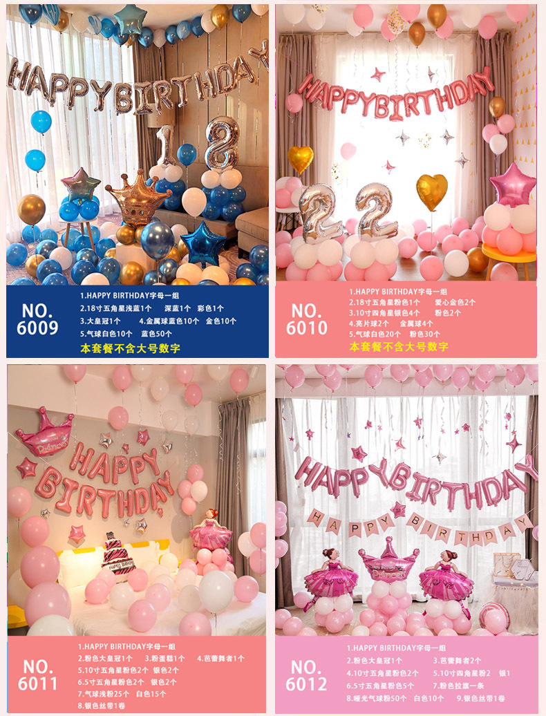 생일 풍선 레이아웃 높은 감각 알루미늄 필름 풍선 세트 소년과 소녀 생일 파티 레이아웃 장식 도매스토어 가기