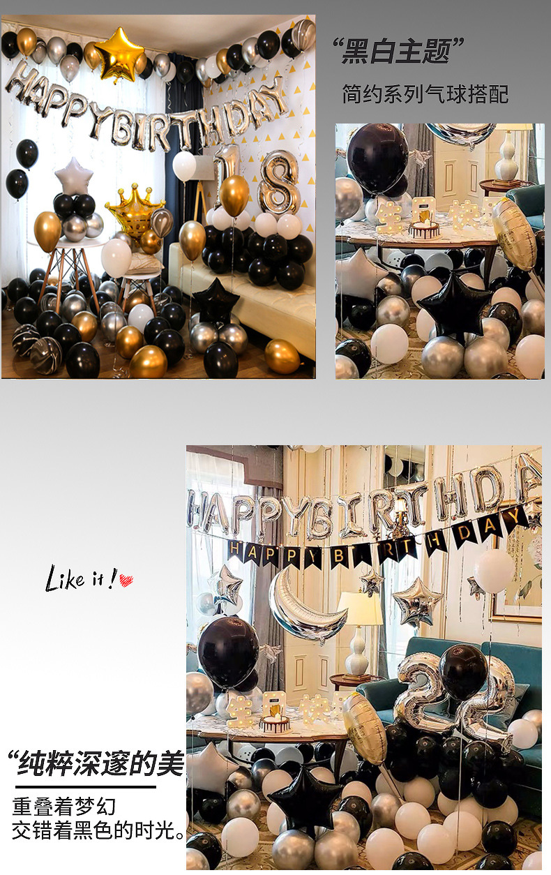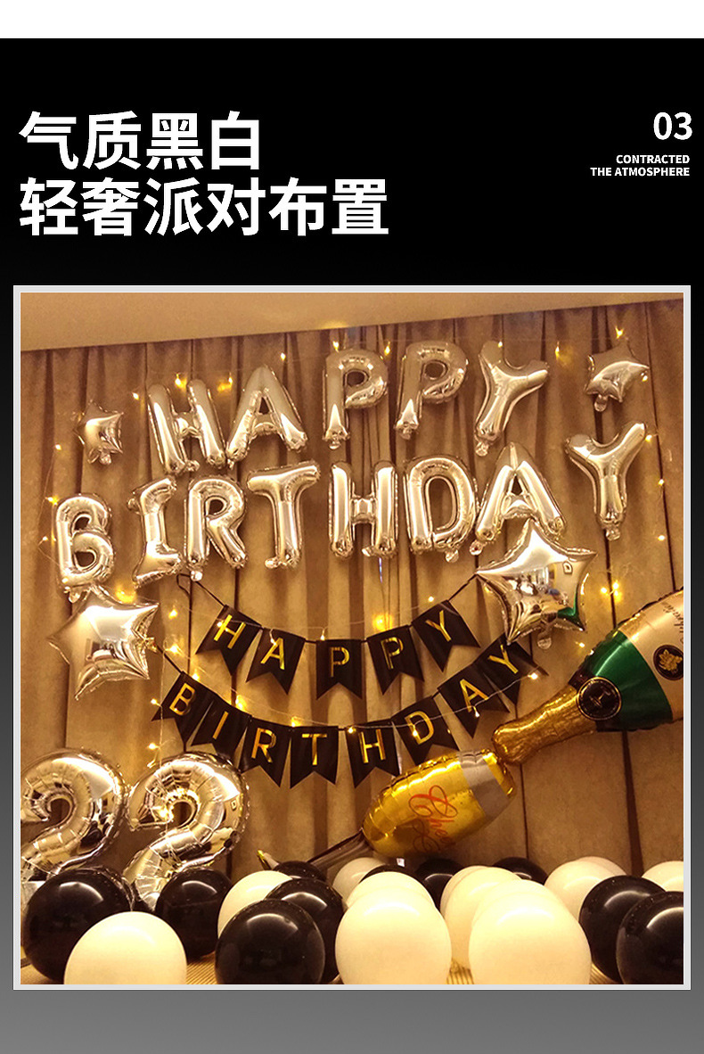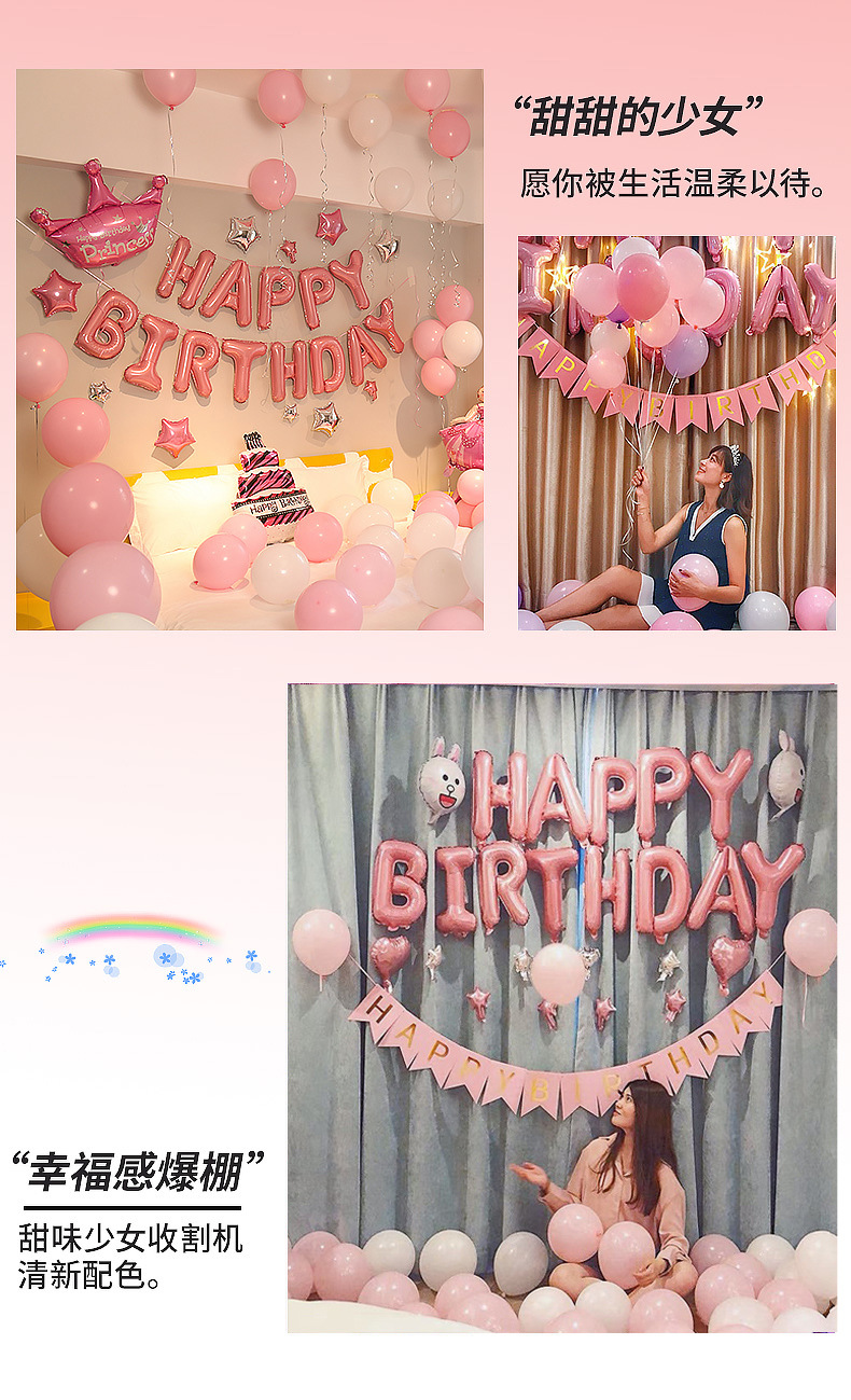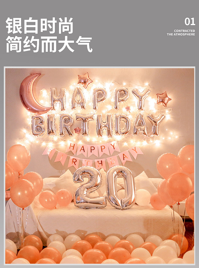 생일 풍선 레이아웃 높은 감각 알루미늄 필름 풍선 세트 소년과 소녀 생일 파티 레이아웃 장식 도매스토어 가기