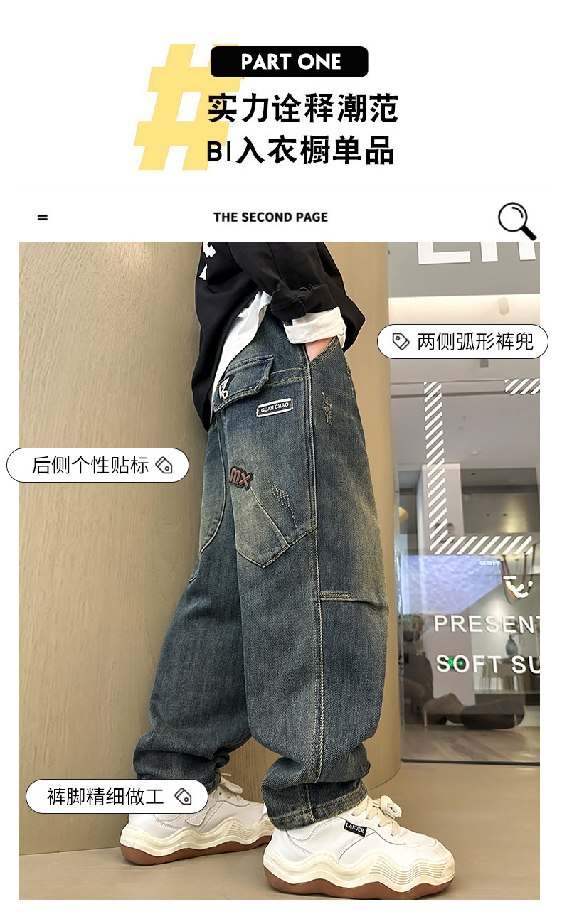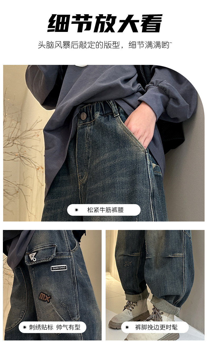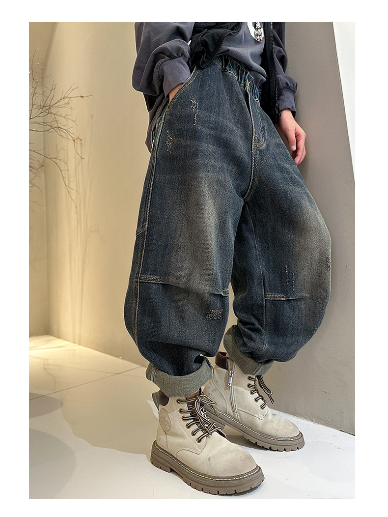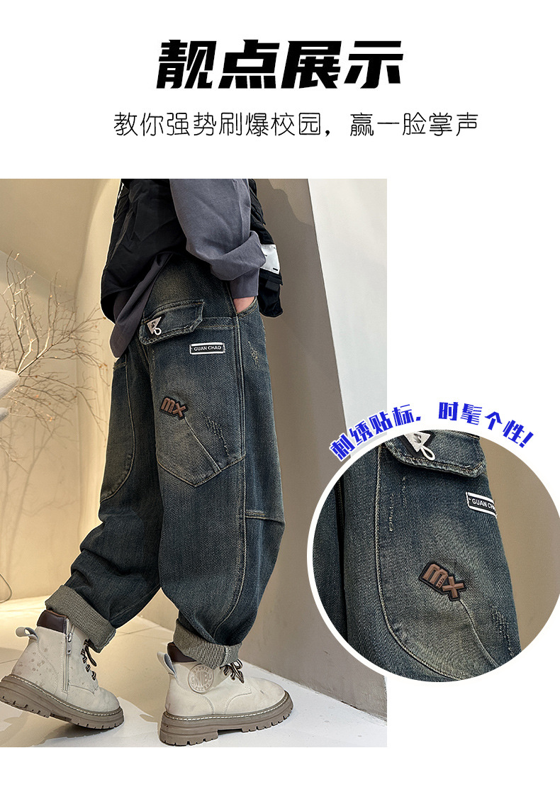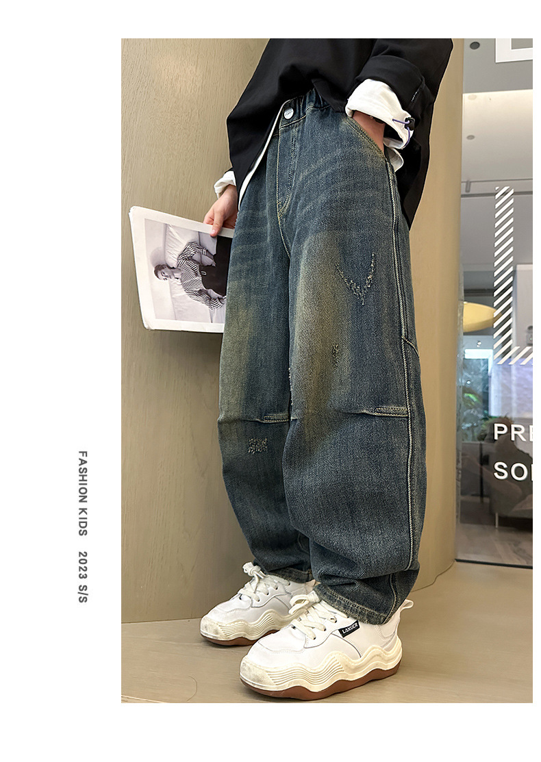 소년 바지 봄과 가을 튀김 거리 중다 어린이 가을 청바지 2024 가을 새로운 바지 유행 소년스토어 가기