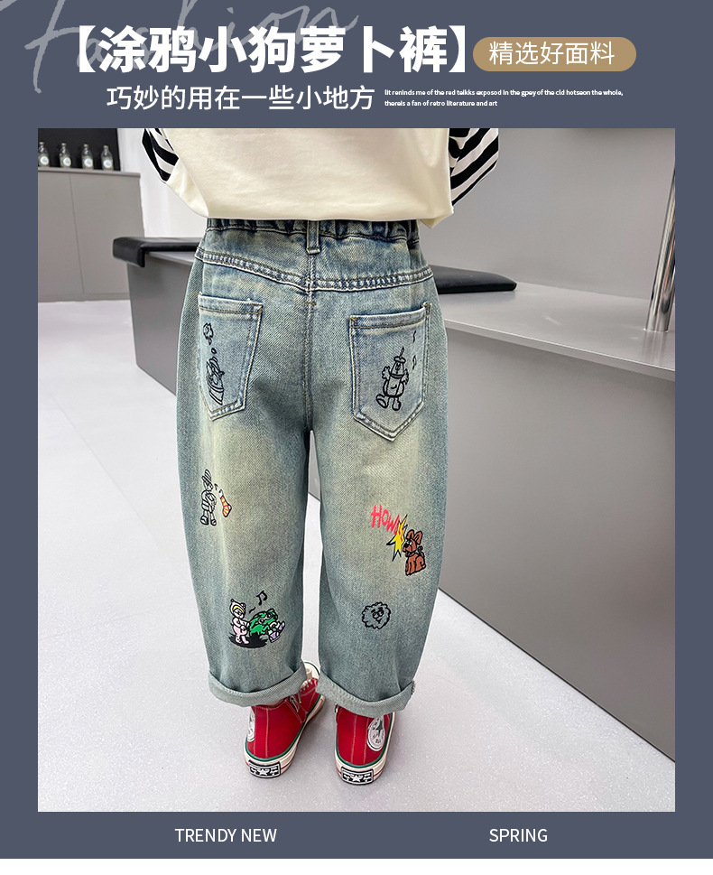소녀 서양식 느슨한 한국 스타일 봄과 가을 부드러운 청바지 어린이 외부 바지 바지 아기의 봄 2024 새로운 유행스토어 가기