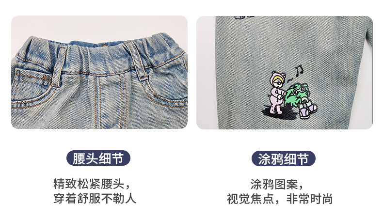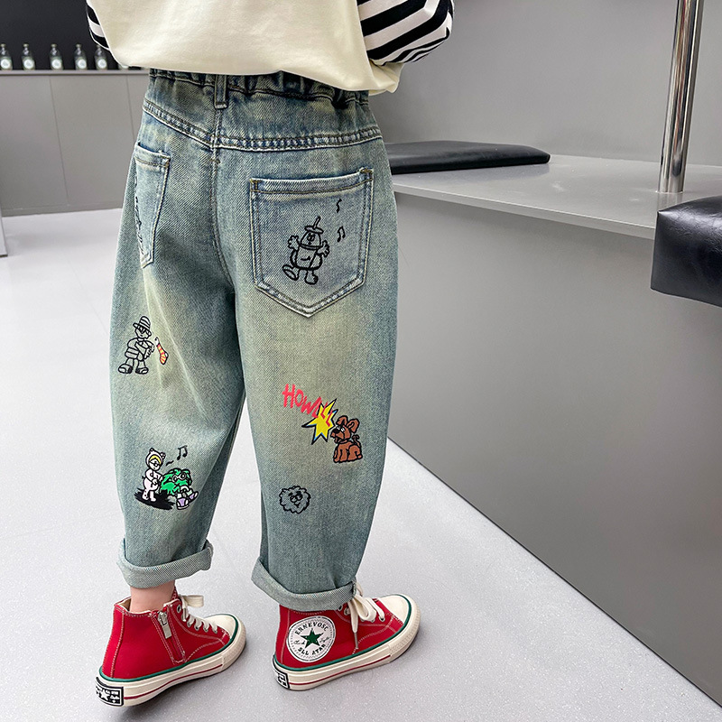 소녀 서양식 느슨한 한국 스타일 봄과 가을 부드러운 청바지 어린이 외부 바지 바지 아기의 봄 2024 새로운 유행