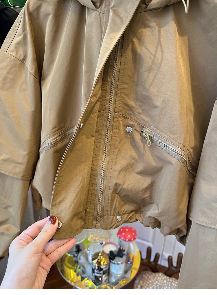 작은 단색 디자인 후드 긴팔 퀼팅 재킷 2025 봄, 가을 새로운 디자인 다용도 윈드 브레이커