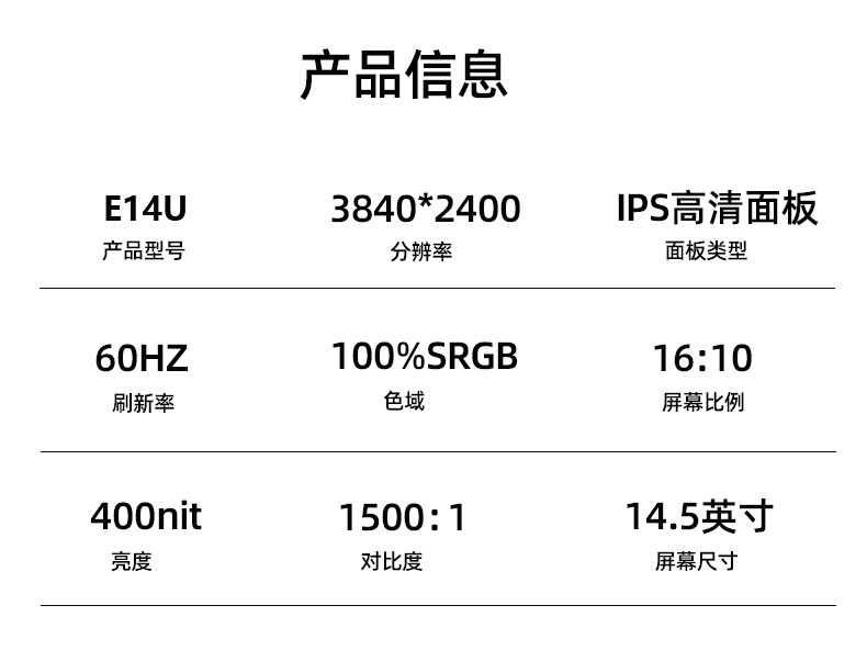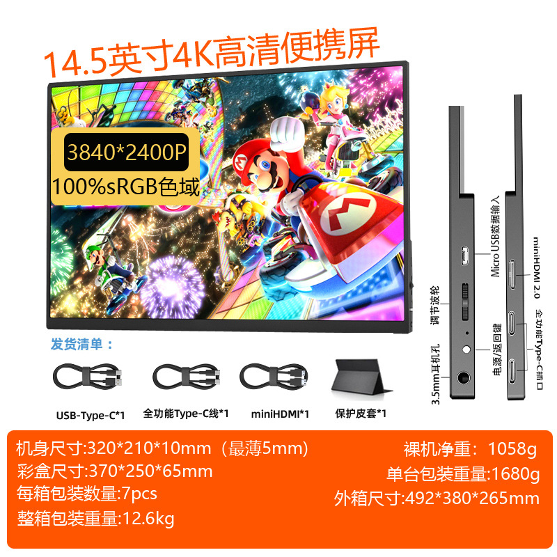 소스 공장 14.5 "4K HD 휴대용 디스플레이 컴퓨터 서브 스크린 확장 화면 스위치 외부 화면
