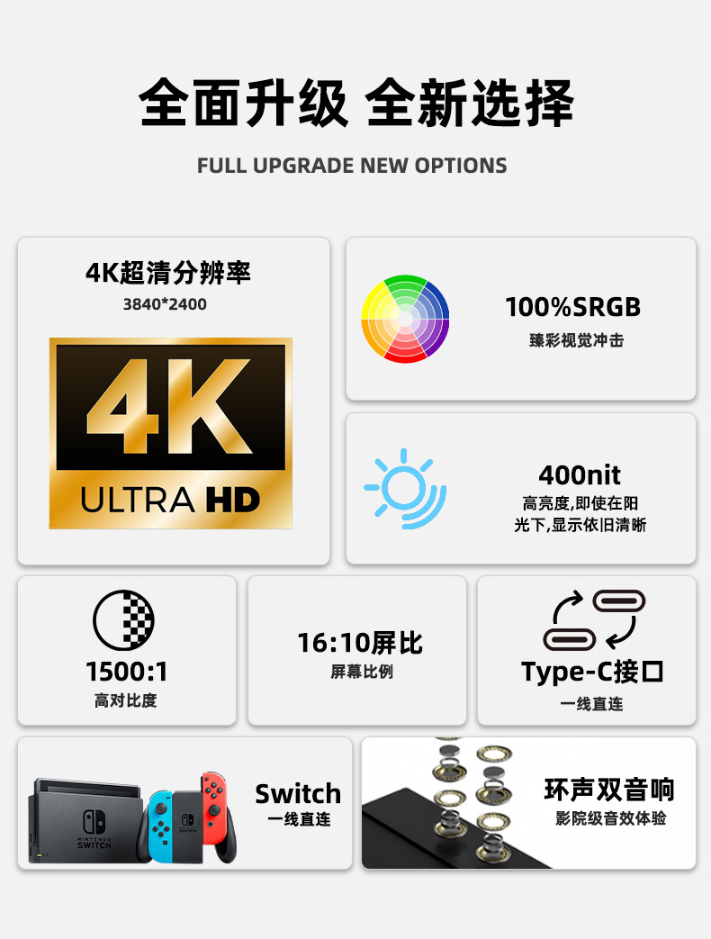 소스 공장 14.5 "4K HD 휴대용 디스플레이 컴퓨터 서브 스크린 확장 화면 스위치 외부 화면스토어 가기