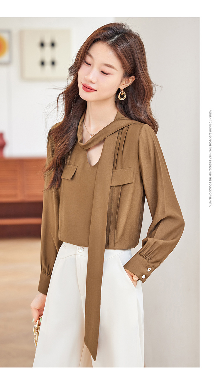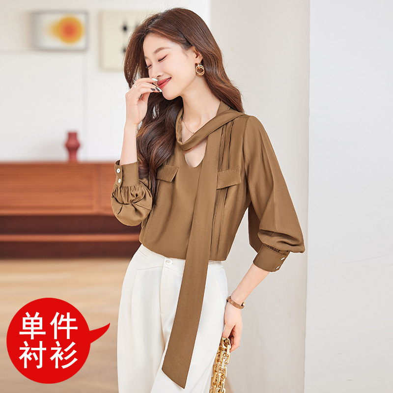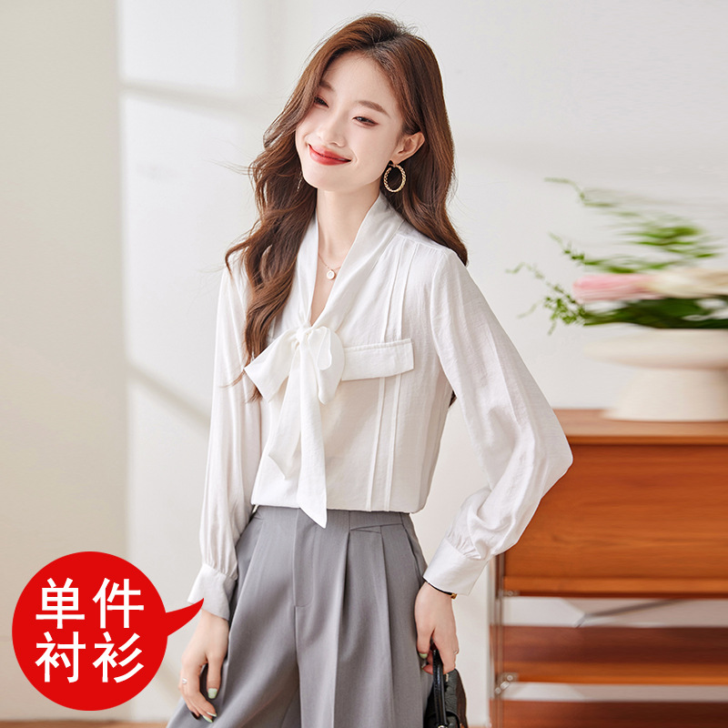 블루 셔츠 여성용 긴팔 봄과 가을 하이 엔드 라이트 럭셔리 에이지 감소 웨스턴 스타일 2024 새로운 스타일 전문 통근 원피스 셔츠