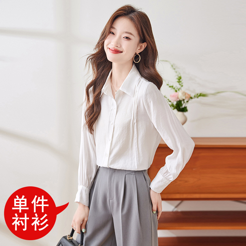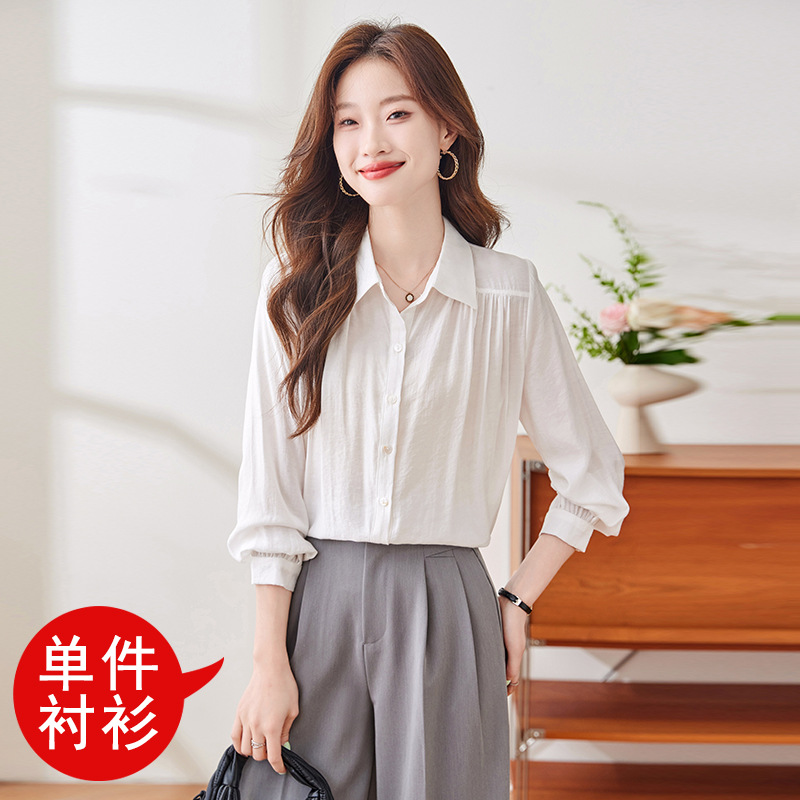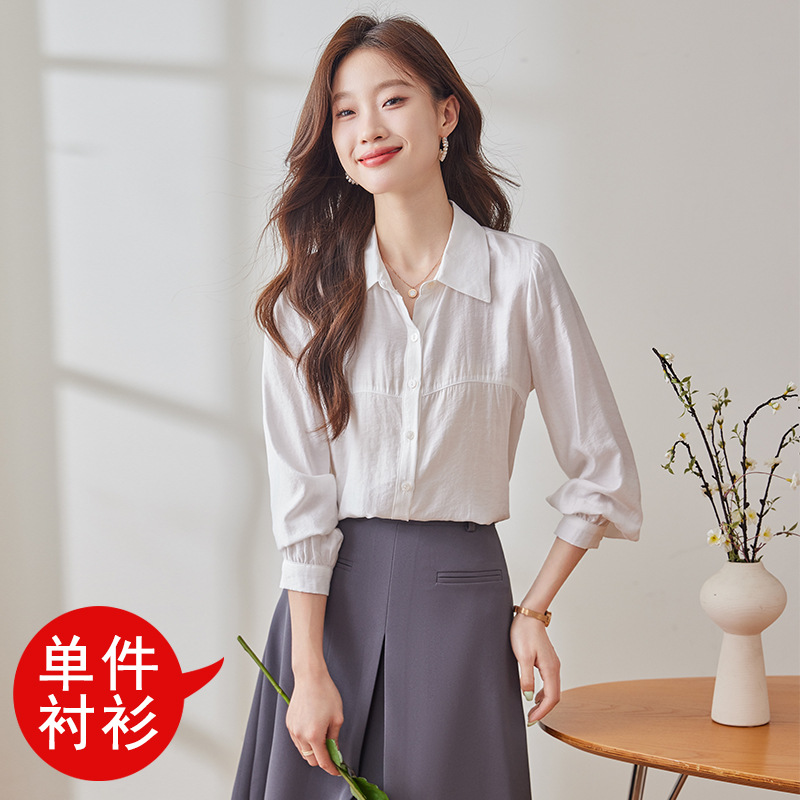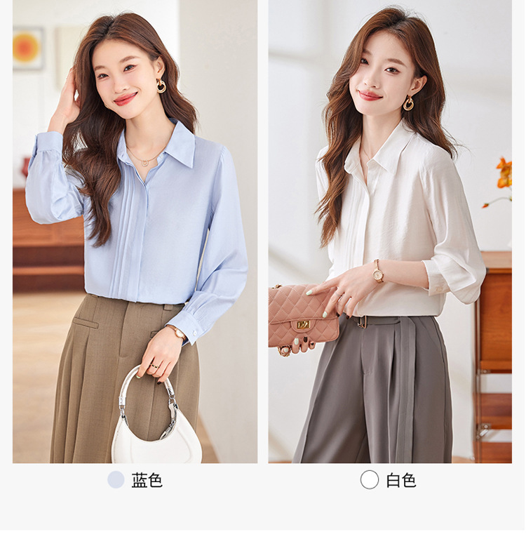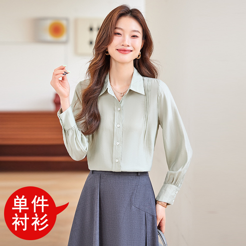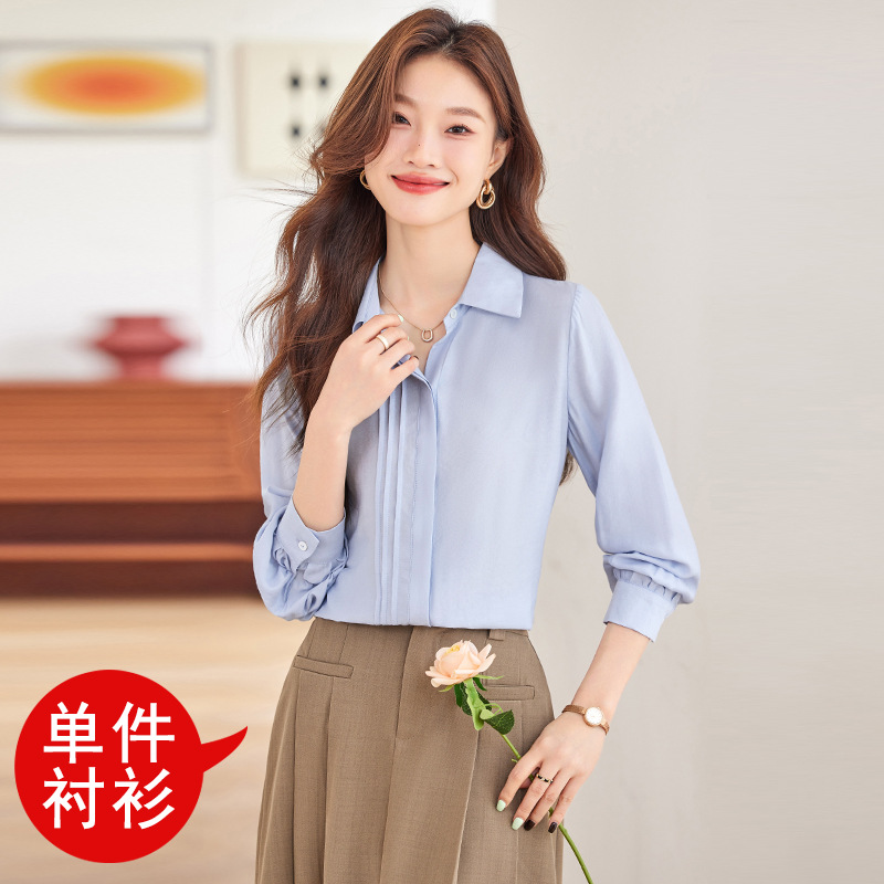 블루 셔츠 여성용 긴팔 봄과 가을 하이 엔드 라이트 럭셔리 에이지 감소 웨스턴 스타일 2024 새로운 스타일 전문 통근 원피스 셔츠스토어 가기