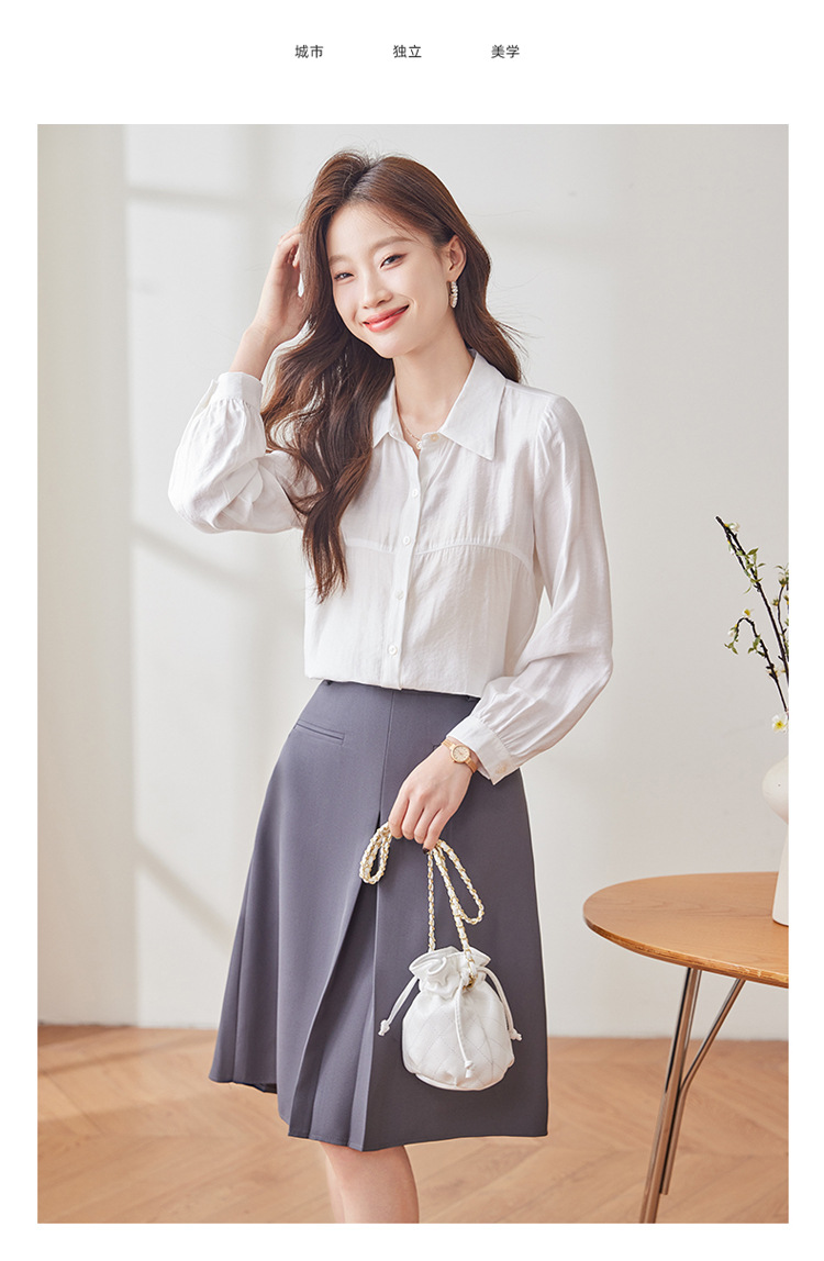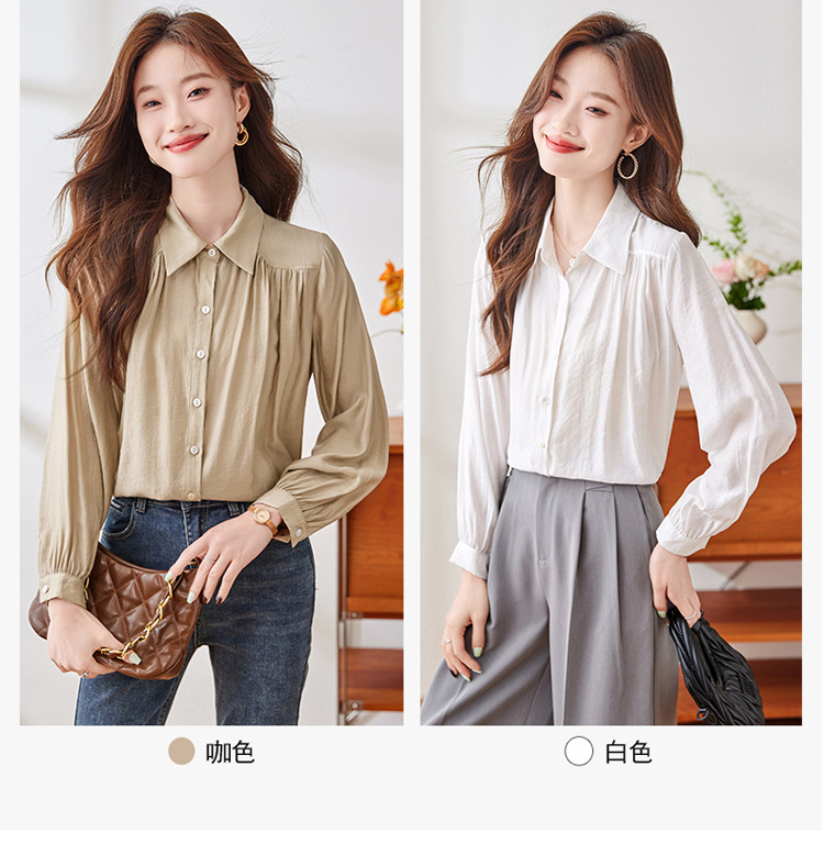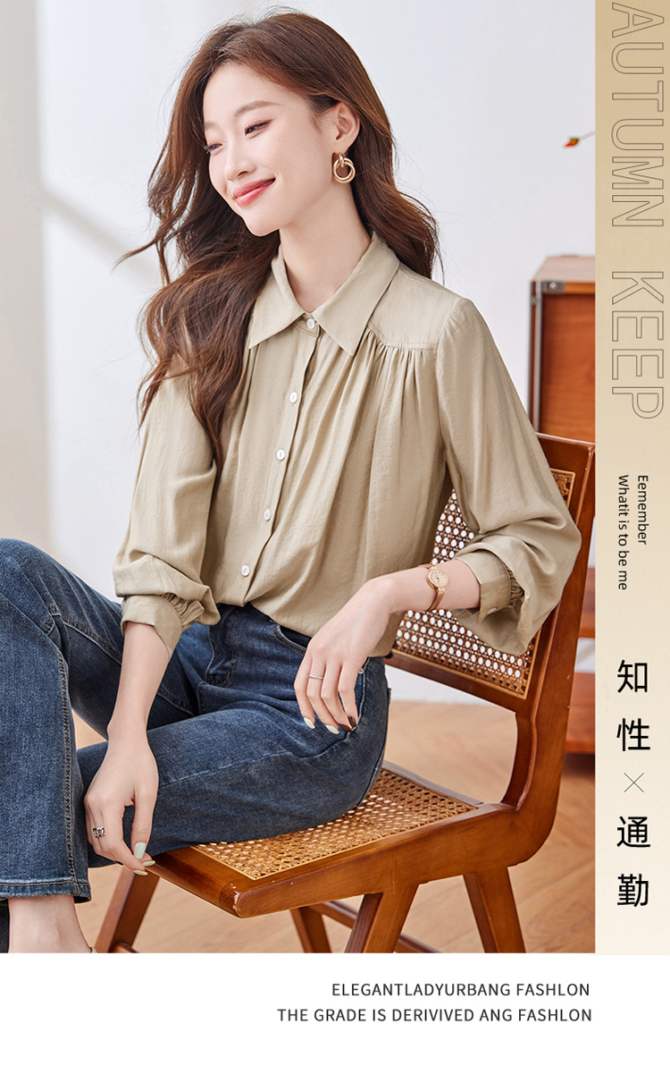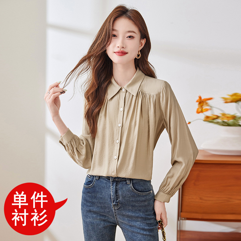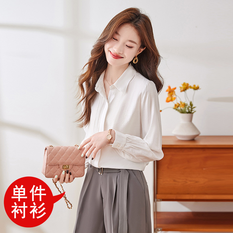 블루 셔츠 여성용 긴팔 봄과 가을 하이 엔드 라이트 럭셔리 에이지 감소 웨스턴 스타일 2024 새로운 스타일 전문 통근 원피스 셔츠스토어 가기