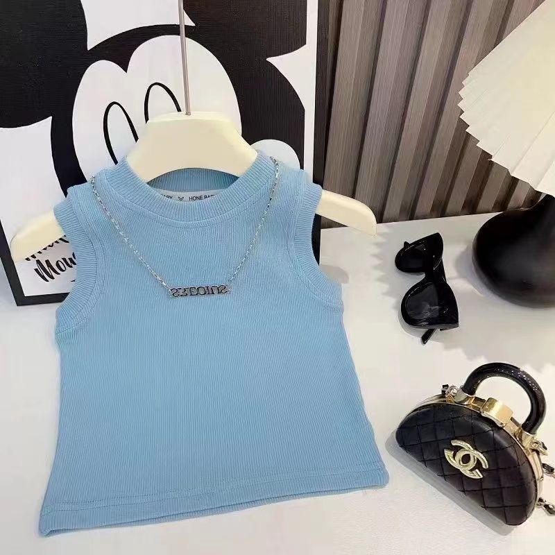 • 흰색 면 조끼 + 얇은 데님 반바지 스커트