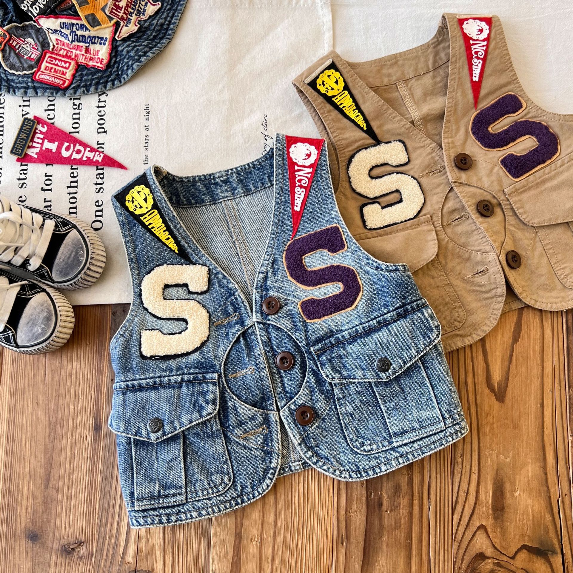 [재고] 일본 아동복 미들 DD 어린이 배지 조끼 10 천명이 사계절 찾는다