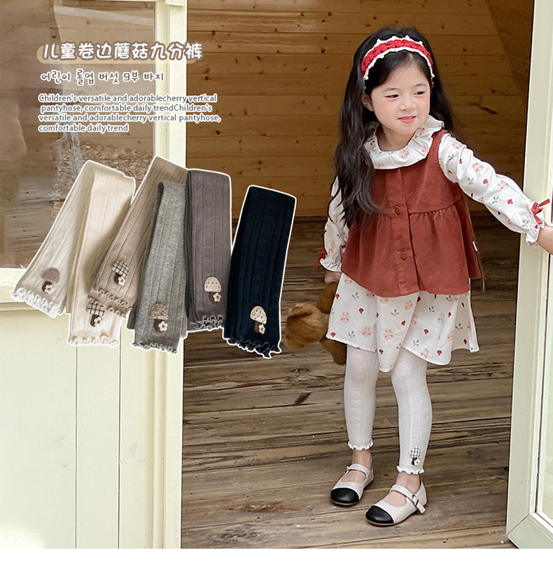 아기 어린이 레깅스 봄과 가을 코튼 얇은 아기의 큰 PP 소녀 팬티 스타킹 외부 착용 컬링 9 개 버섯 바지스토어 가기