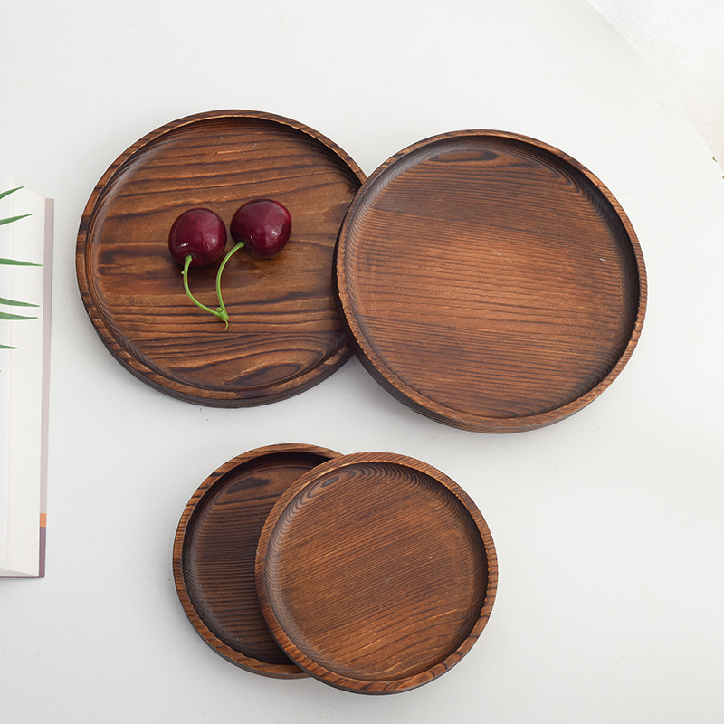 가정용 과일 빵 플레이트 호텔 디너 플레이트 라운드 트레이 모양 나무 트레이 단단한 나무 티 컵 트레이스토어 가기