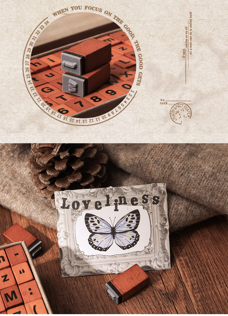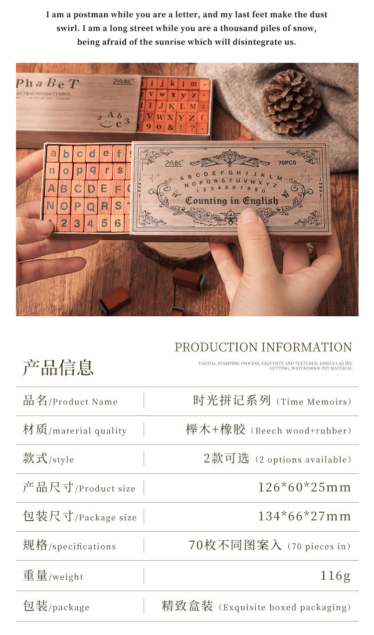 새로운 제품을위한 국경 특별 시간 철자는 목제 영어 인감 번호 및 세트 봉인 손 계정 도매를 기억스토어 가기