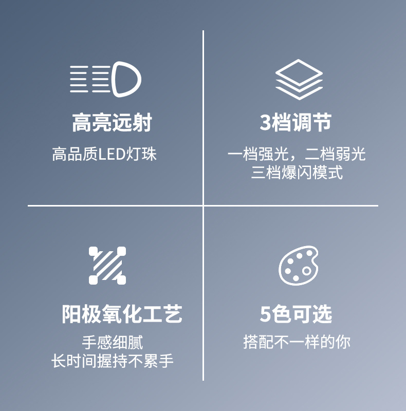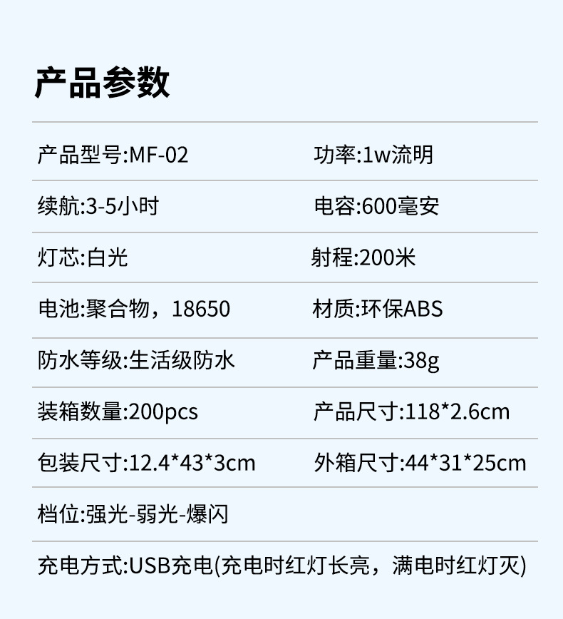 档位:强光-弱光-爆闪