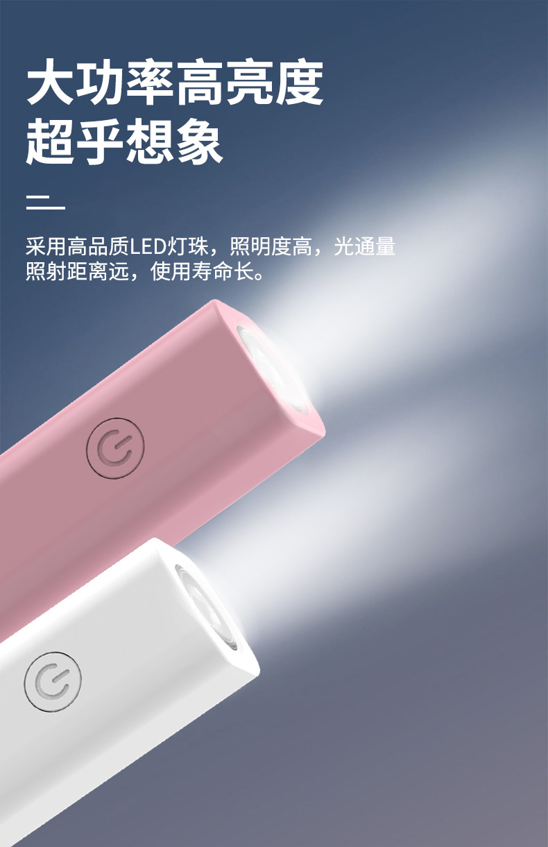 새로운 강한 빛 미니 손전등 USB 충전식 야외 비상 휴대용 홈 조명 손전등 선물 로고스토어 가기