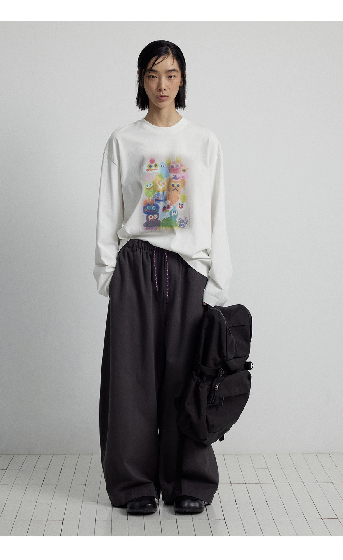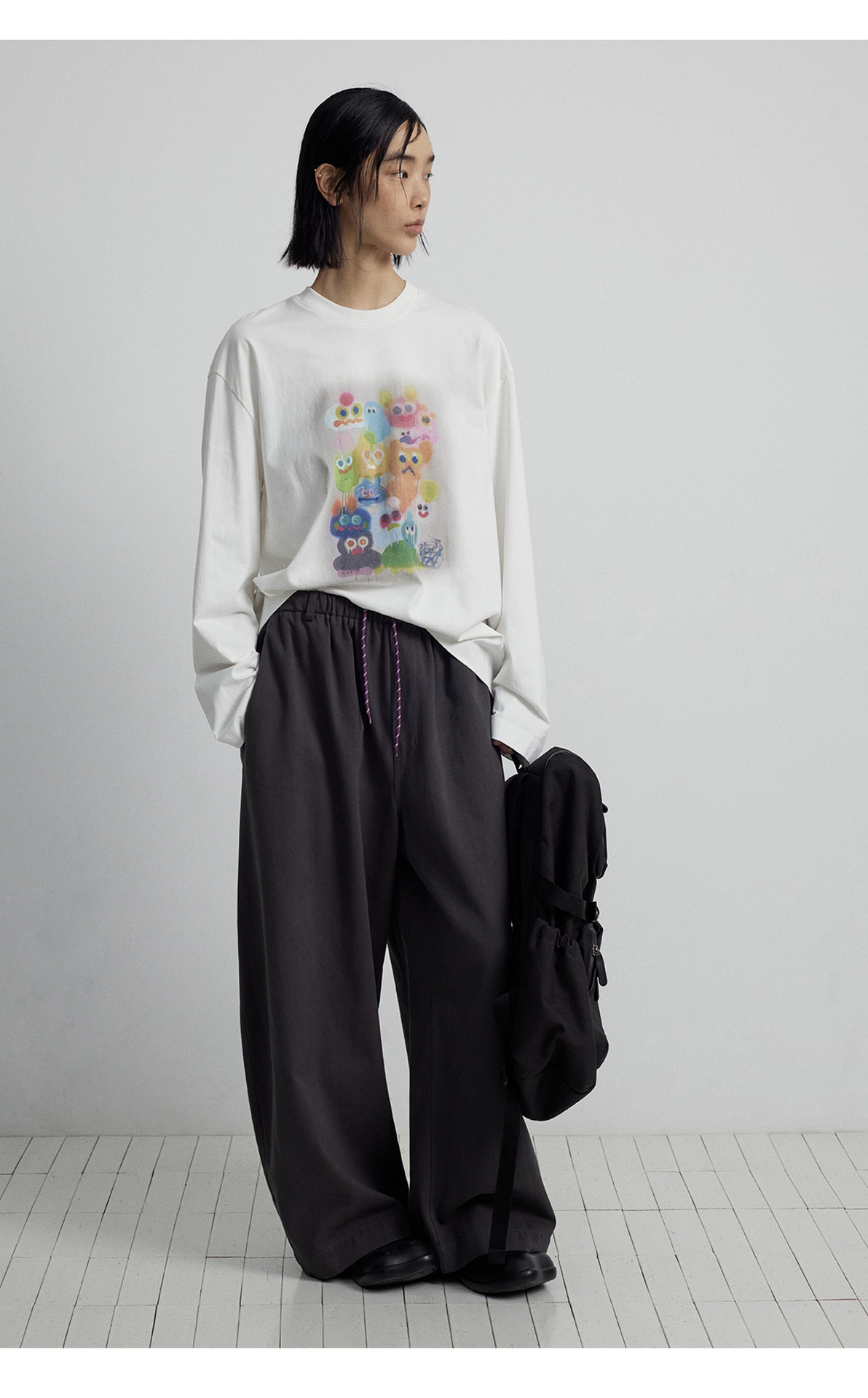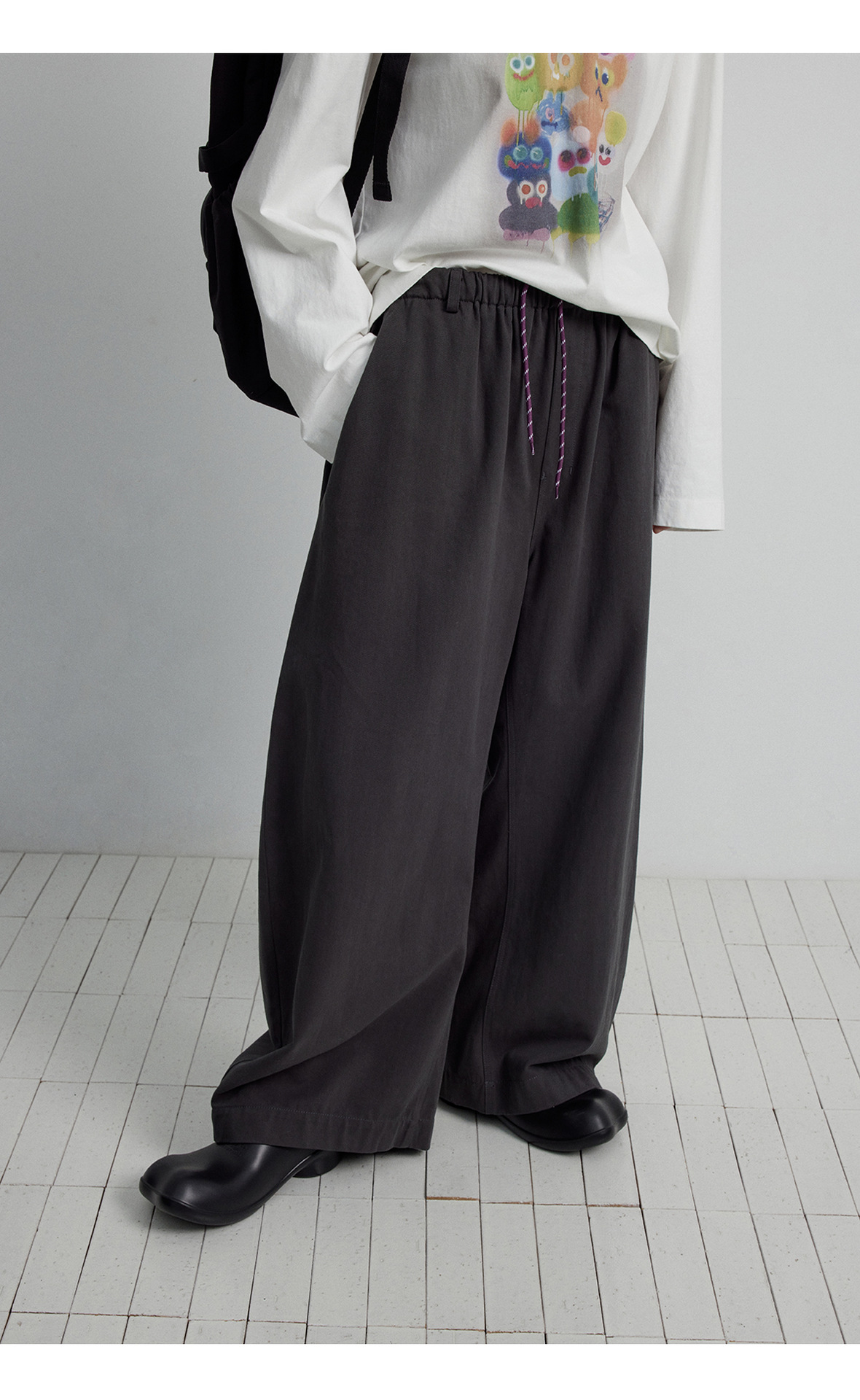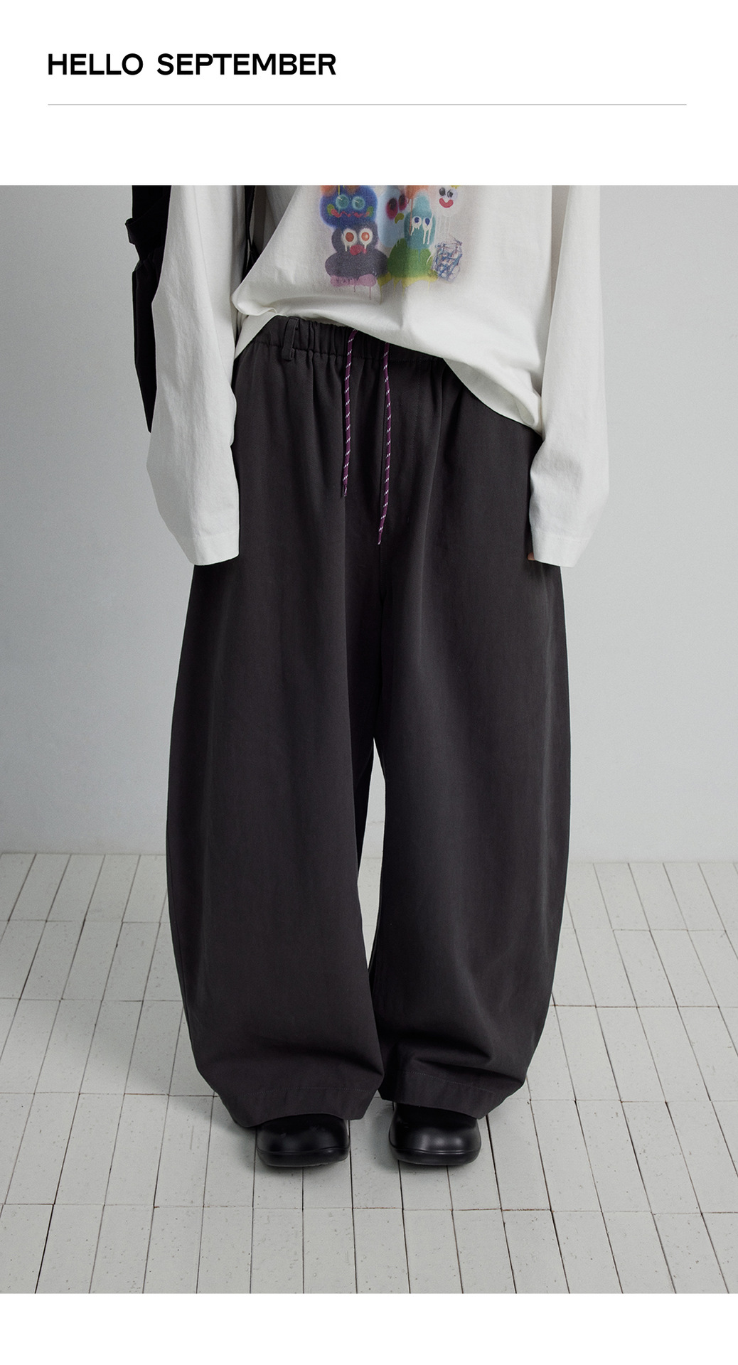 [시시] 신제품 텐셀 코튼 기모 컬러풀 드로스트링 신축성 있는 허리밴드 와이드 레그 캐주얼 팬츠 여성용 V7147