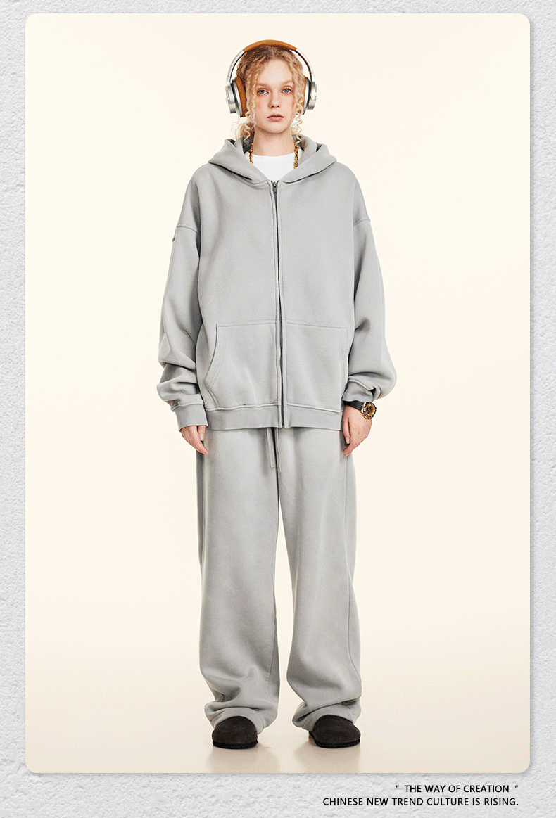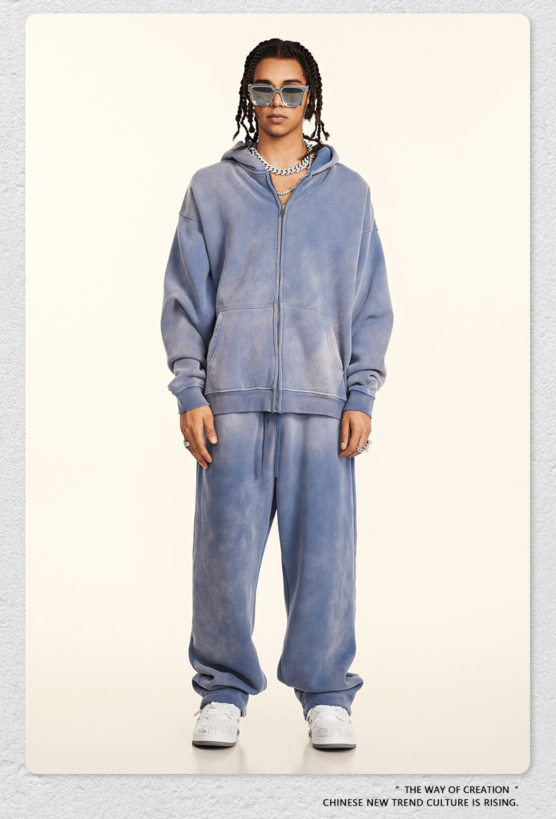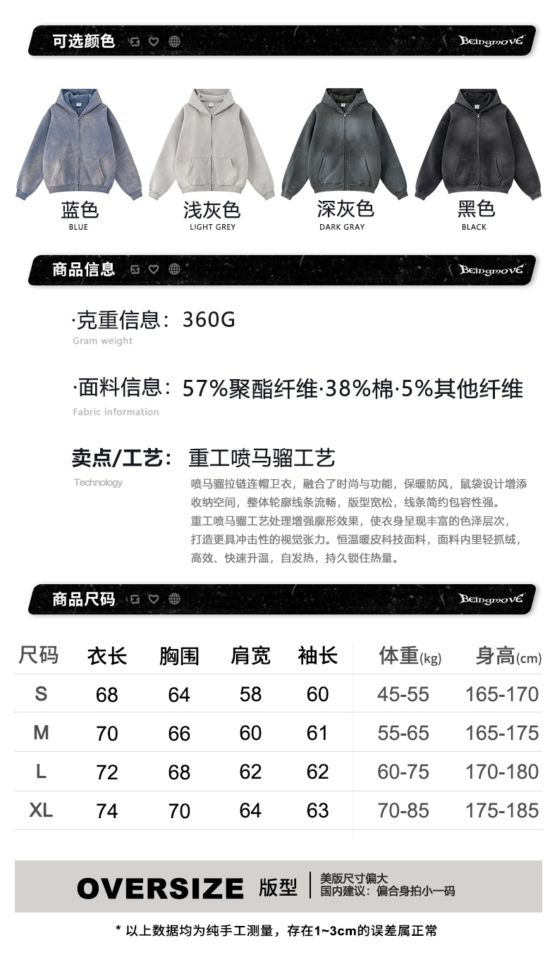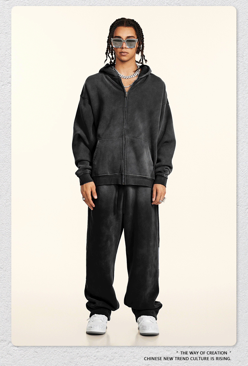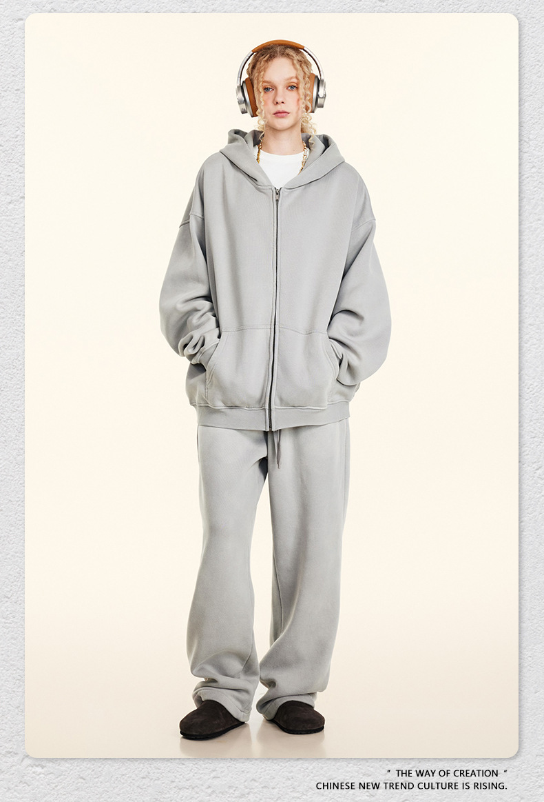 가을 2025 년 미국 하이 스트리트 빈티지 하이 퀄리티 올드 플러스 사이즈 후드 스웨터 남성 지퍼 카디건 재킷