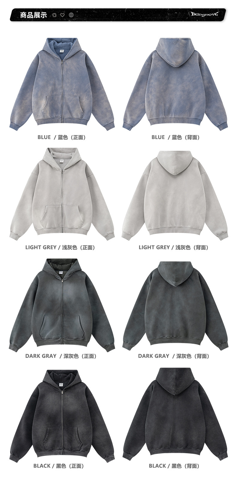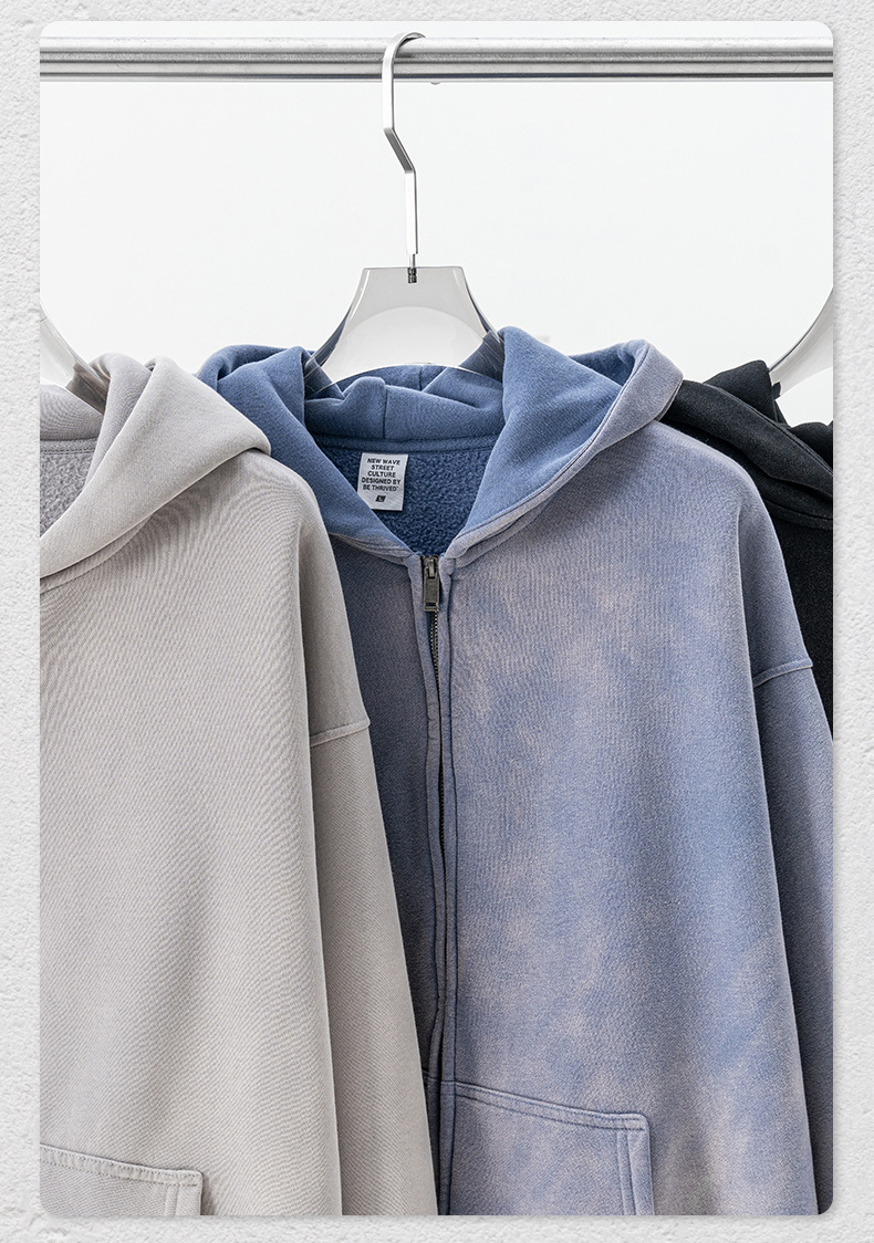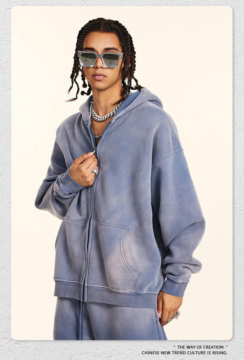 가을 2025 년 미국 하이 스트리트 빈티지 하이 퀄리티 올드 플러스 사이즈 후드 스웨터 남성 지퍼 카디건 재킷스토어 가기