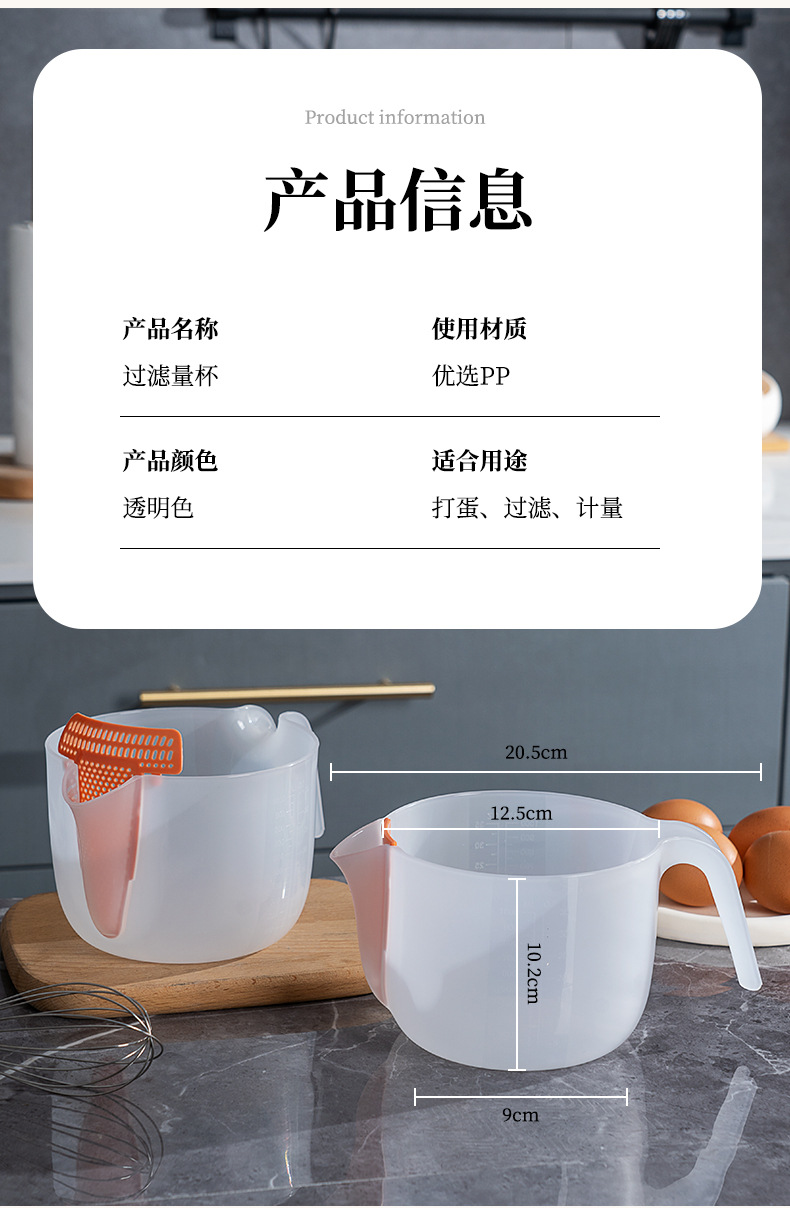 계란 필터 측정 컵 대규모 주방 식품 등급 플라스틱 베이킹 계란 컵 배플