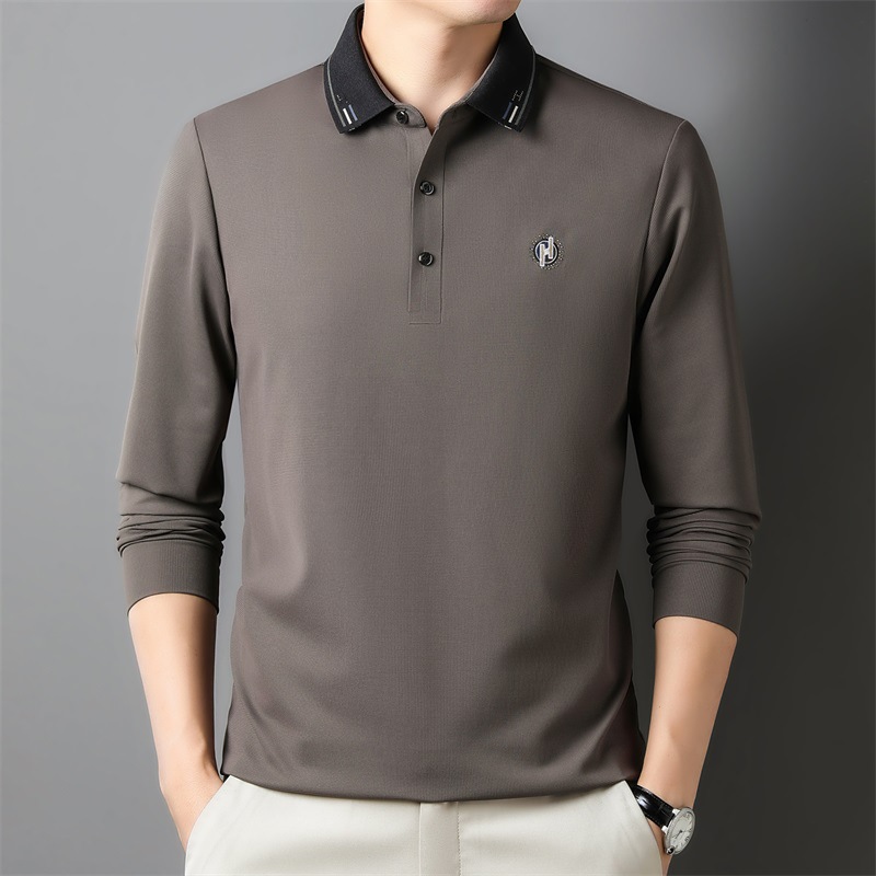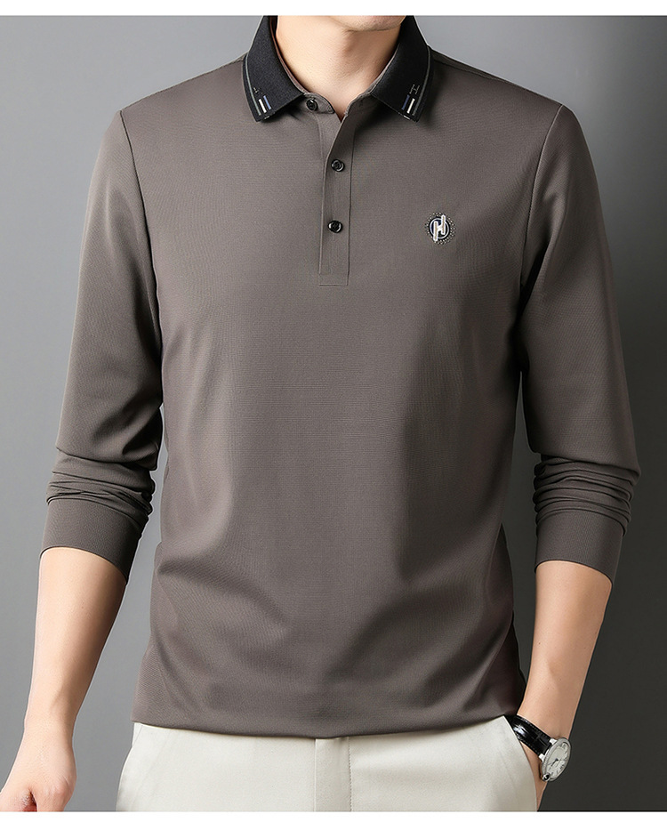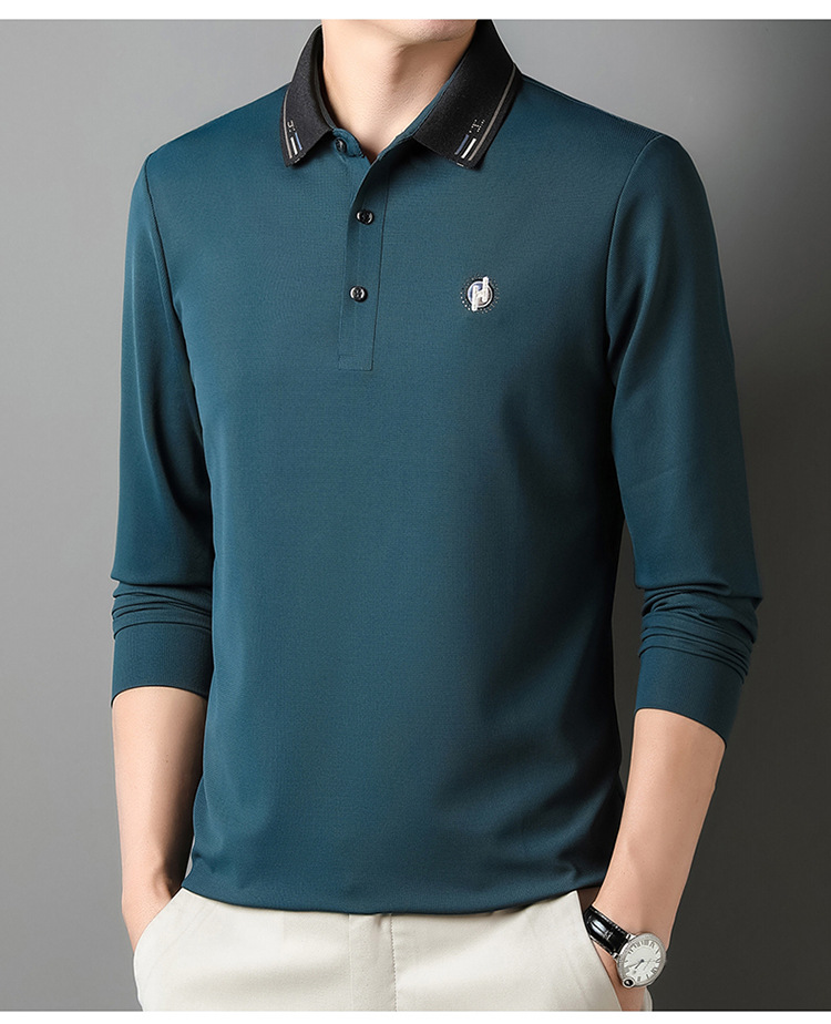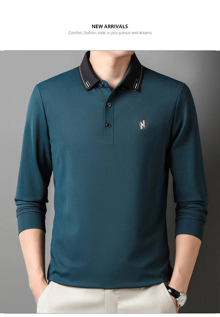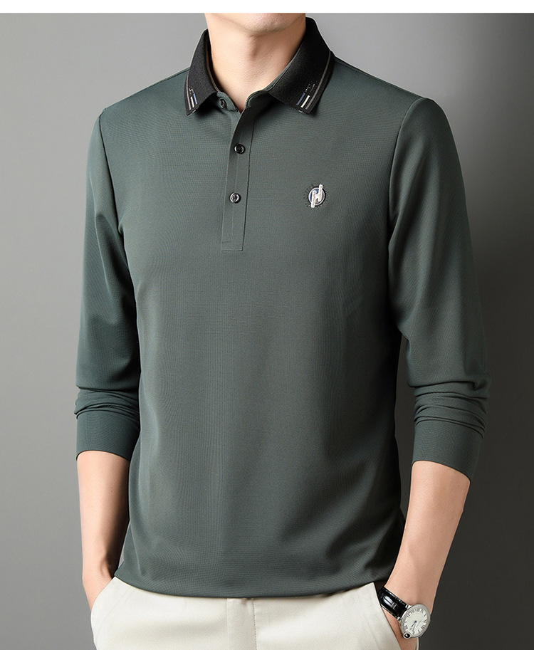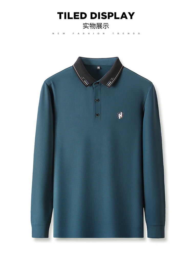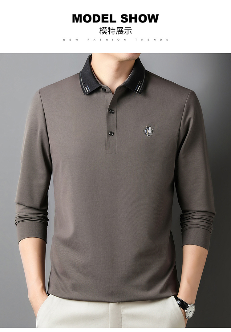 2024 봄과 가을 새로운 긴팔 티셔츠 남성용 솔리드 컬러 코튼 중년 및 젊은 남성용 릴베이스 티셔츠 트렌디스토어 가기