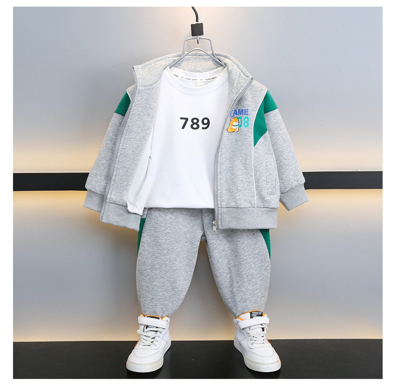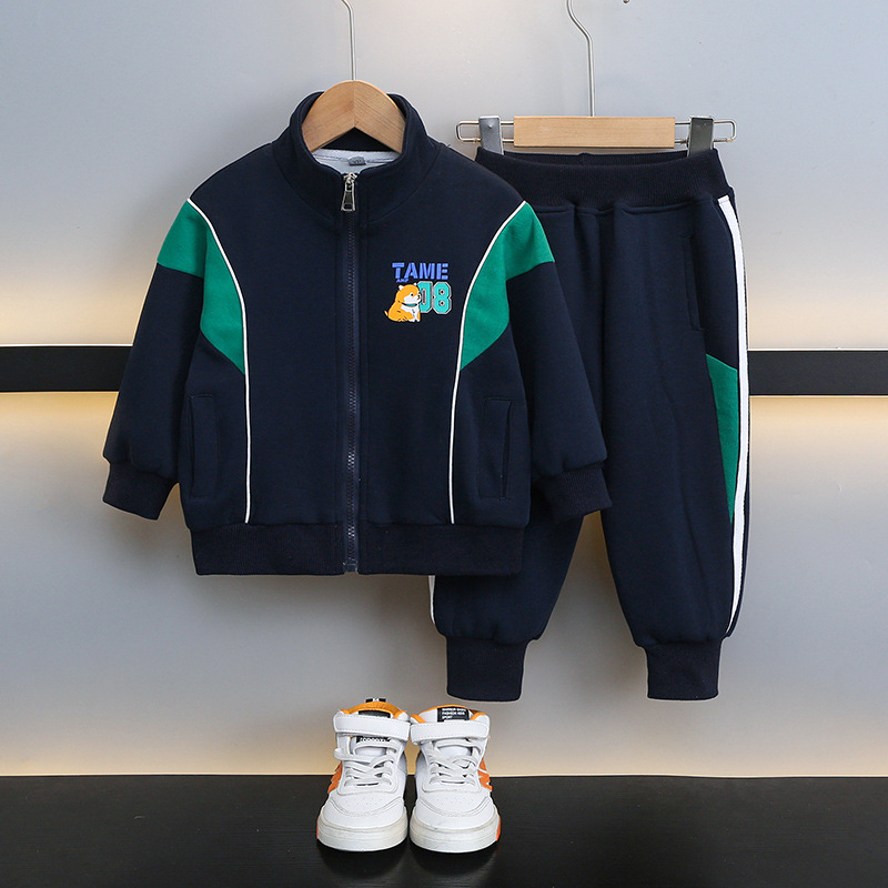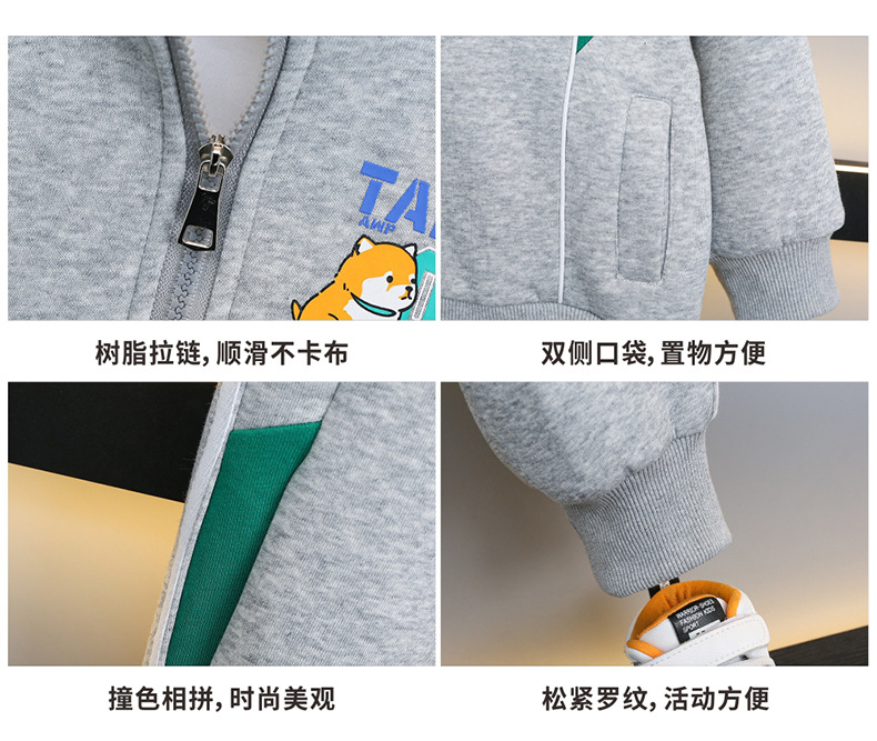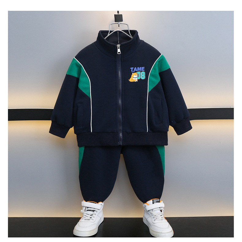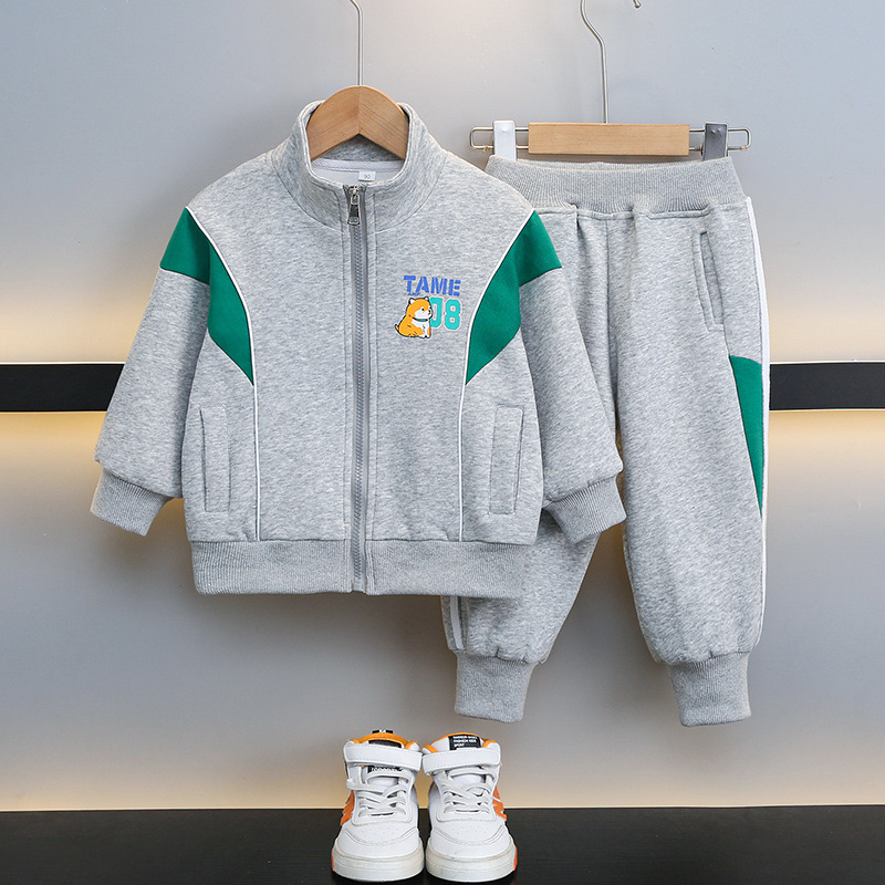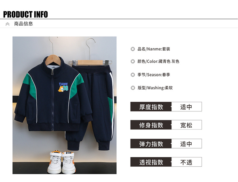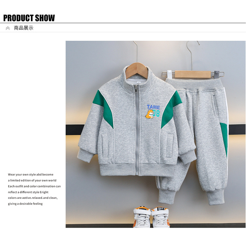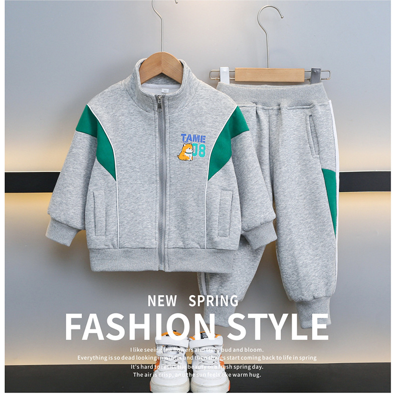 남자들의 가을착용 스포츠 지퍼 셔츠 세트 2024 새로운 어린이 봄과 가을 두 조각 유행 아기 옷스토어 가기