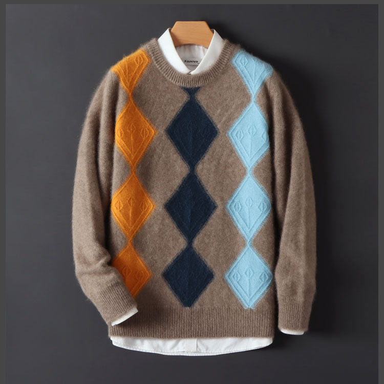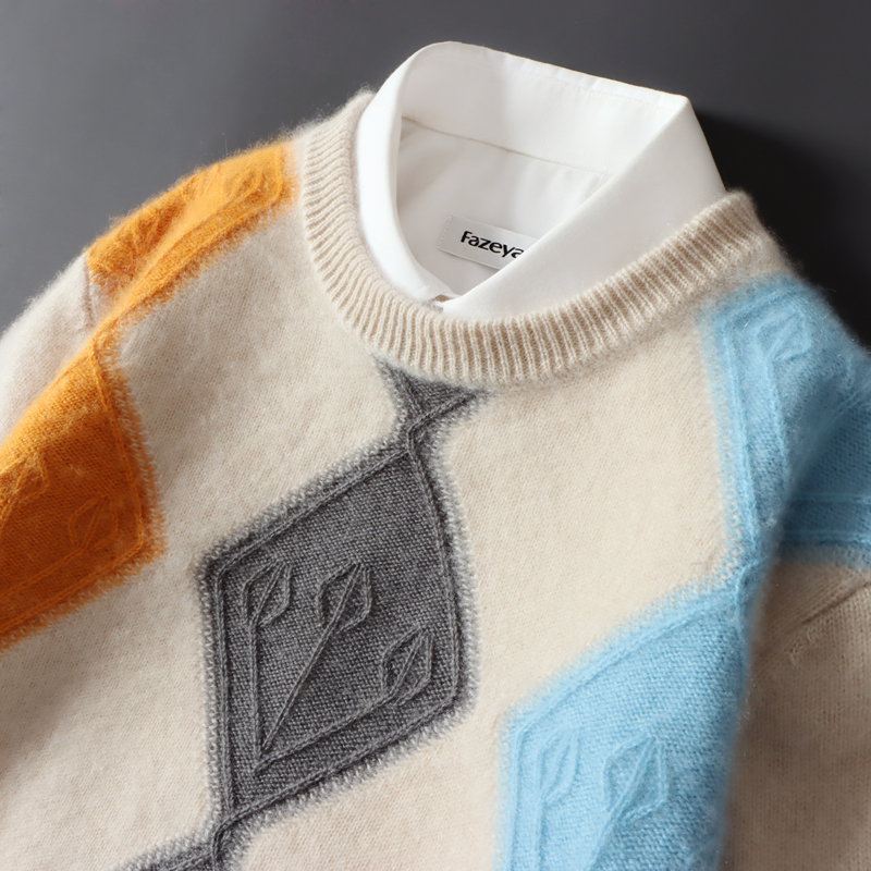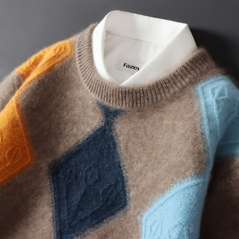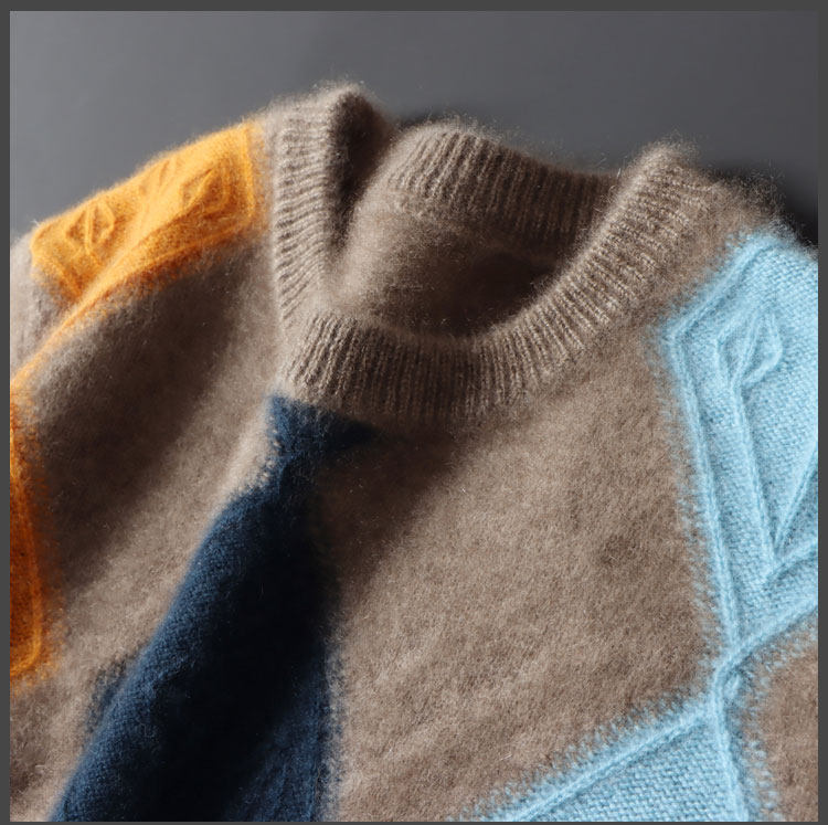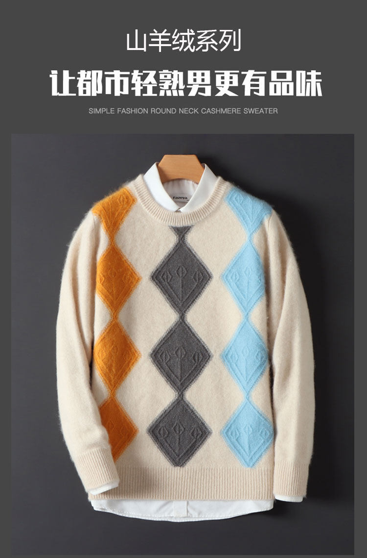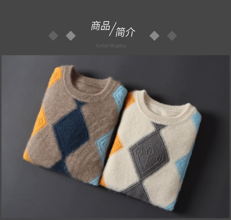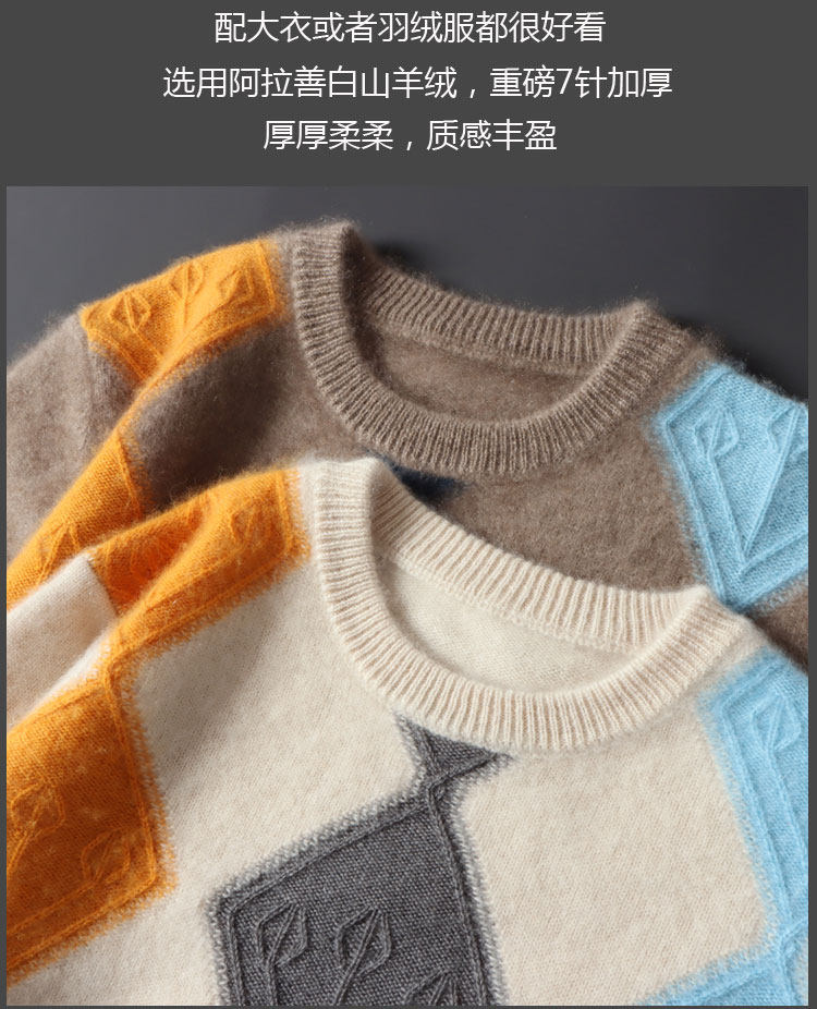 100 순수 양모 스웨터 남자의 가을과 겨울 새로운 둥근 목 대비 두꺼운 스웨터 느슨한 캐주얼 캐시미어 니트베이스 셔츠스토어 가기