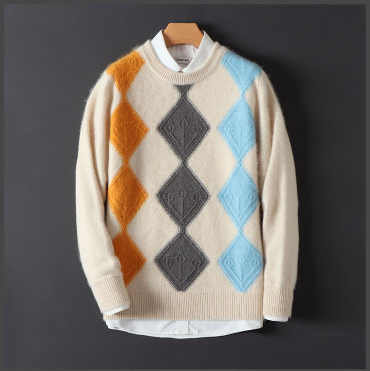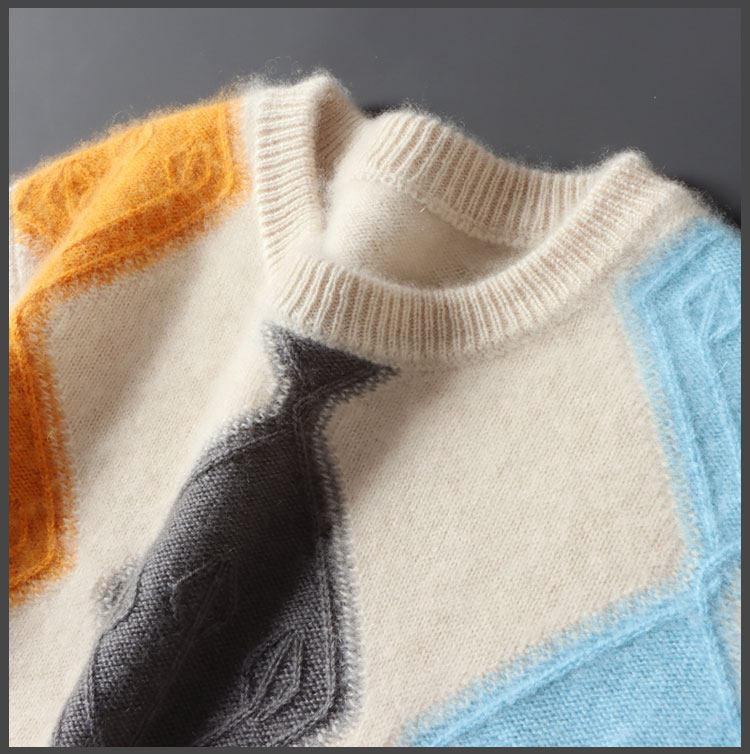 100 순수 양모 스웨터 남자의 가을과 겨울 새로운 둥근 목 대비 두꺼운 스웨터 느슨한 캐주얼 캐시미어 니트베이스 셔츠