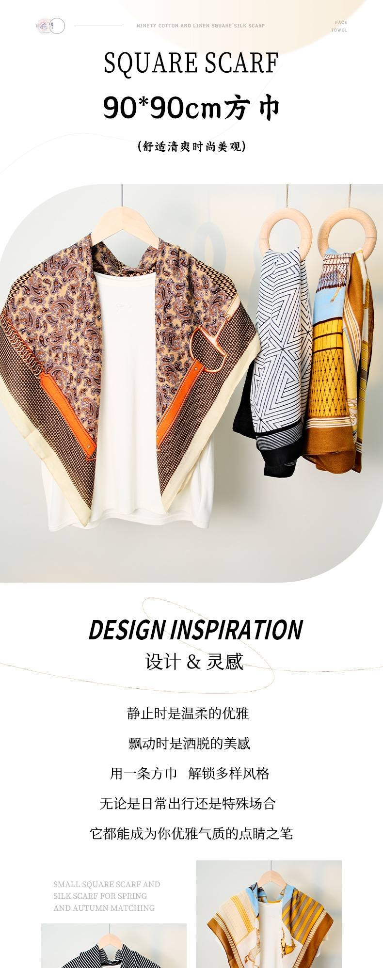 얇은 면화 및 리넨 질감 여성 90 인쇄 된 스퀘어 스카프 예술적 하이 엔드 올매치 목도리 스카프 어머니 선물스토어 가기