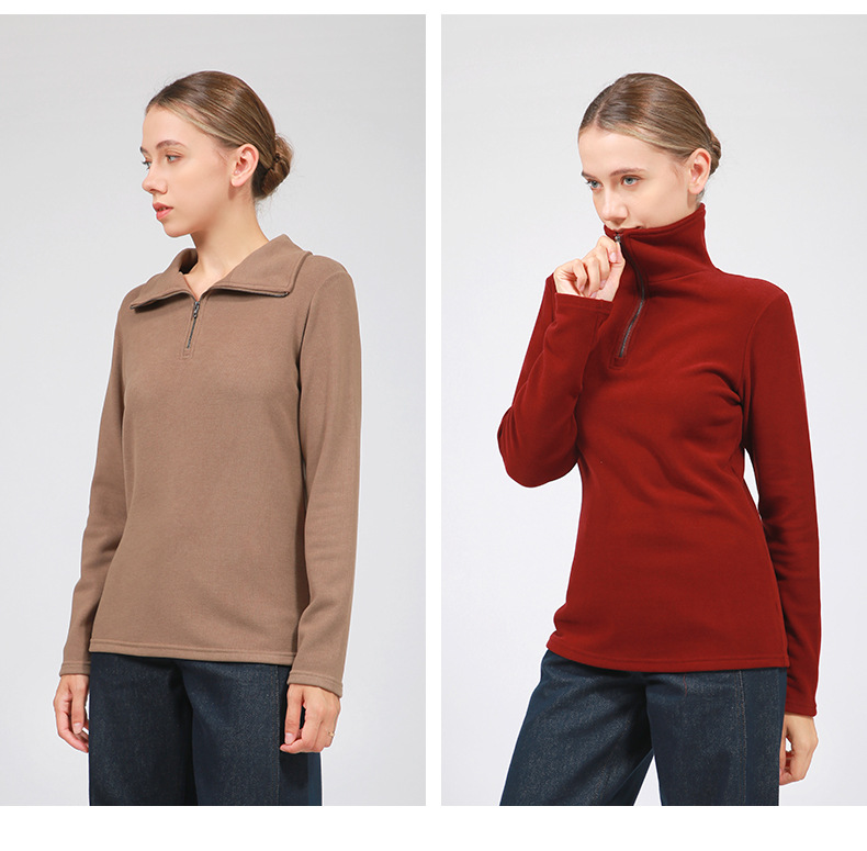 디롱 가을 겨울 신상 여성 하프 터틀넥 스웨트셔츠 두꺼운 보온 긴팔 지퍼 베이스 셔츠 여성용 DZ025