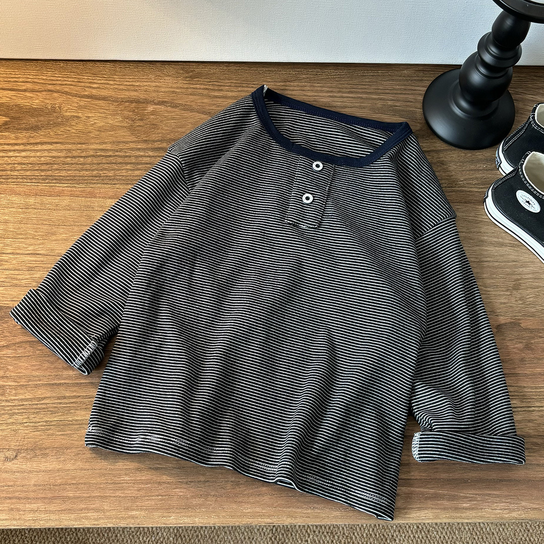 봄과 가을 내부 라운드 넥 핏 스트립 긴팔 티셔츠 가을 옷 아동베이스 셔츠 아기 소년과 소녀 긴팔 올매치 탑