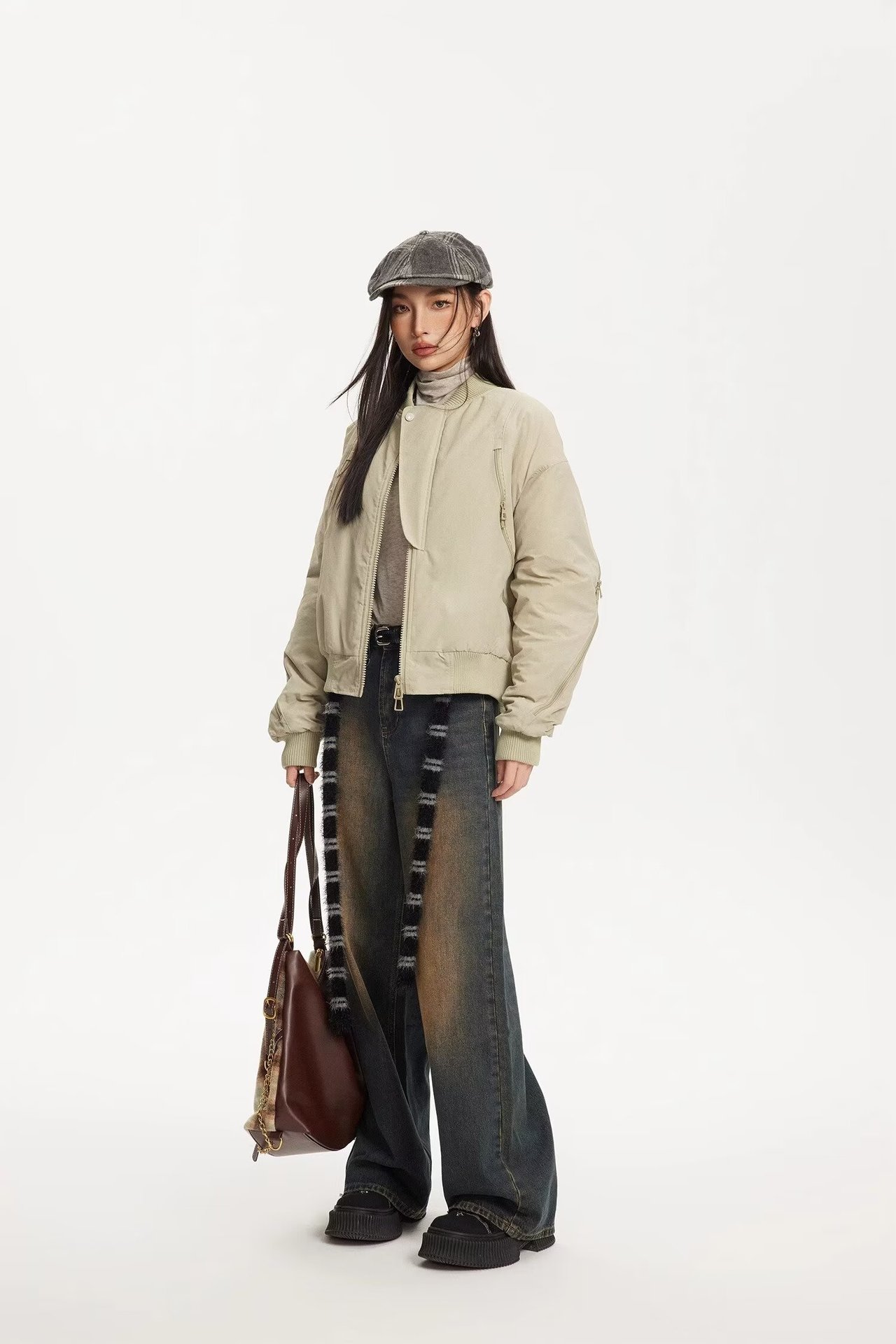 미국 스타일의 레트로 스트리트 솔리드 컬러 디자인 에비에이터 짧은 재킷 느슨한 캐주얼 올 매치 워크 재킷스토어 가기