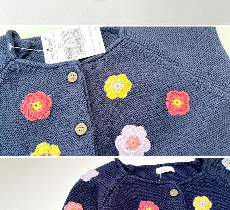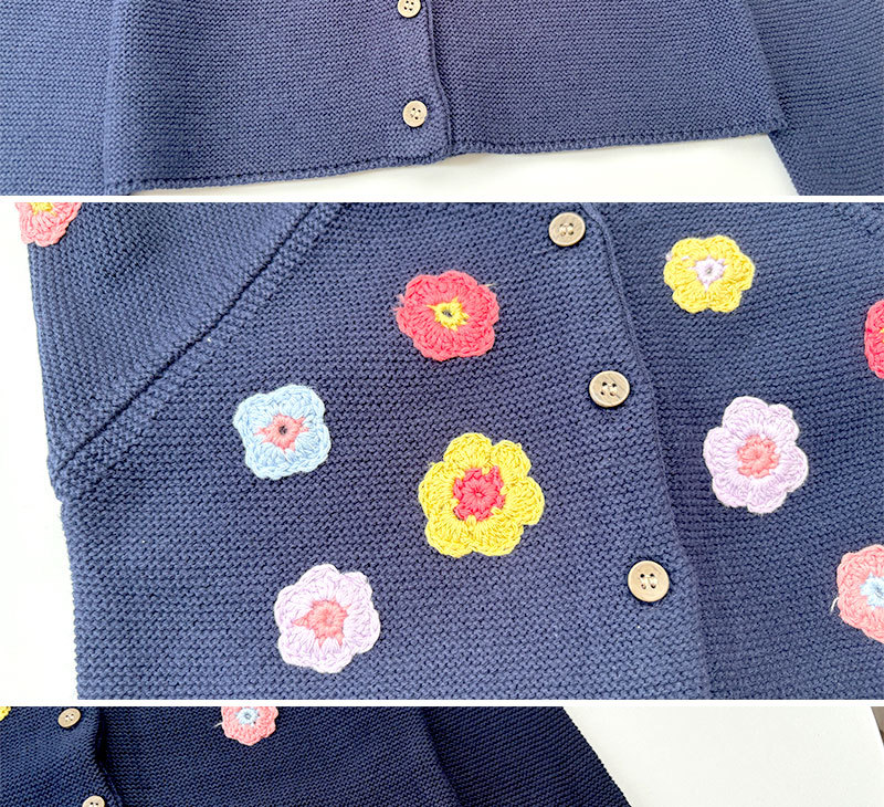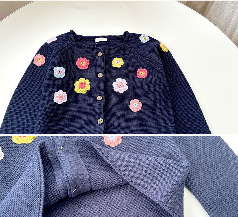 대외 무역 신선한 소녀의 니트 카디건 2024 손으로 수 놓은 색상 작은 꽃 스웨터 순면 서양 스타일 톱 12