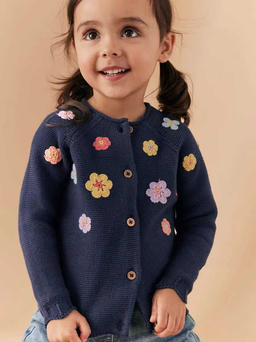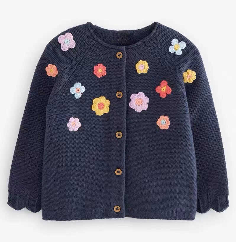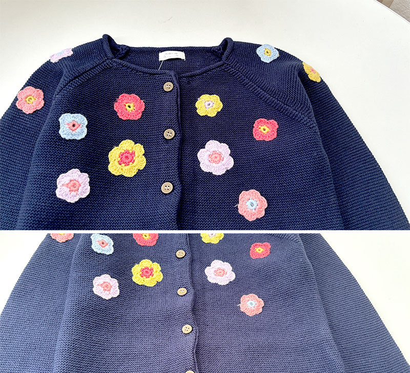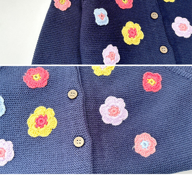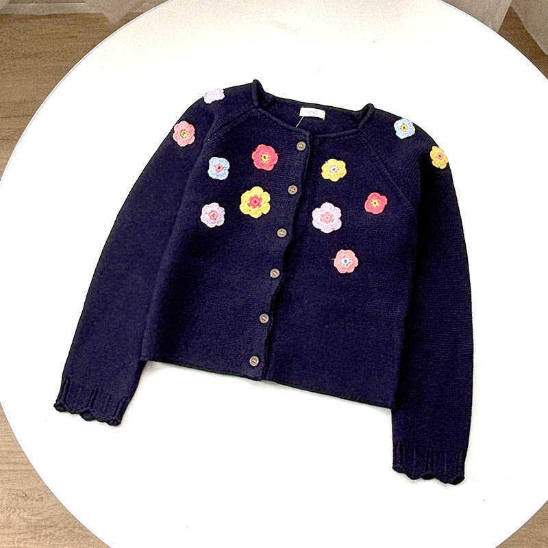 대외 무역 신선한 소녀의 니트 카디건 2024 손으로 수 놓은 색상 작은 꽃 스웨터 순면 서양 스타일 톱 12스토어 가기
