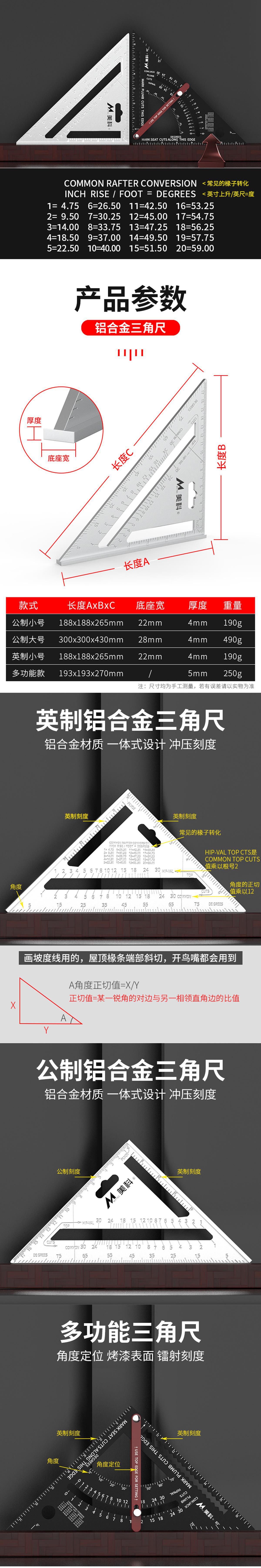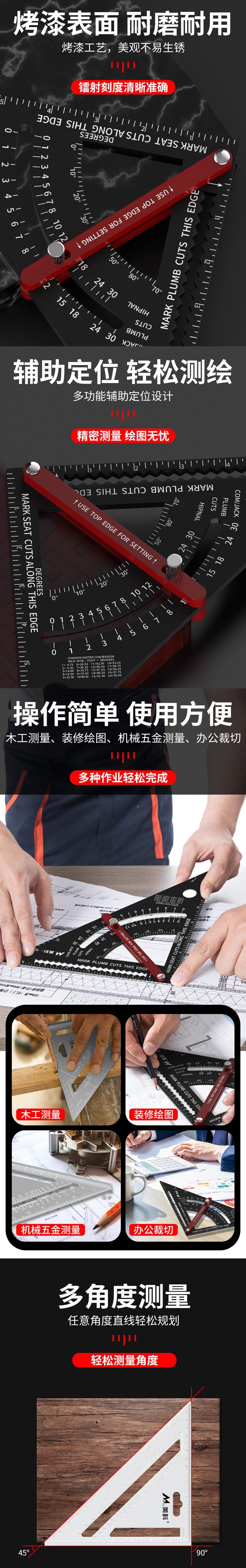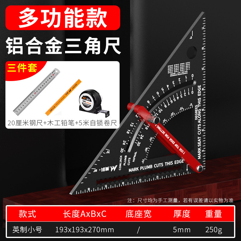• 두꺼운 알루미늄 합금 삼각자(다기능 모델 + 목공 3종 세트)