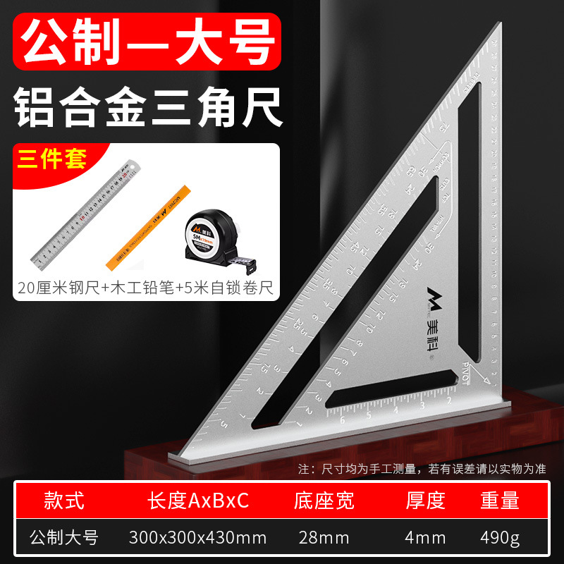 • 두꺼운 알루미늄 합금 삼각자(미터 대형 + 목공 3종 세트)