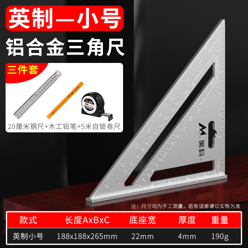 • 두꺼운 알루미늄 합금 삼각자(미터 소형 + 목공 3종 세트)