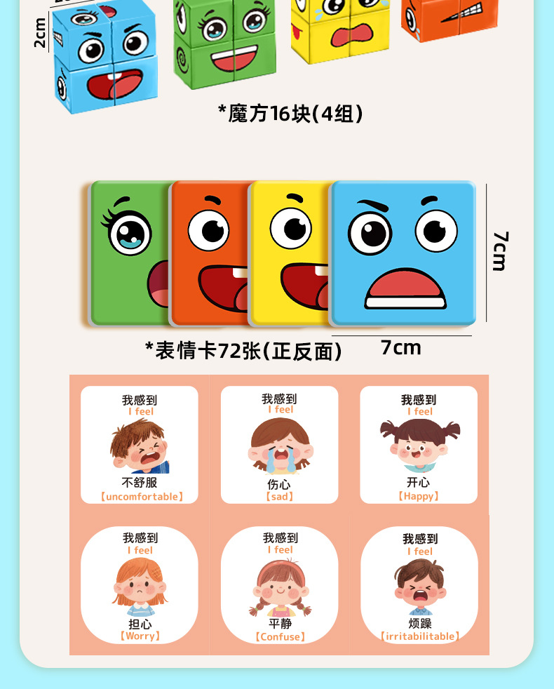• 얼굴 변화 루빅스 큐브 [블록 16개 + 벨 + 카드 72개]