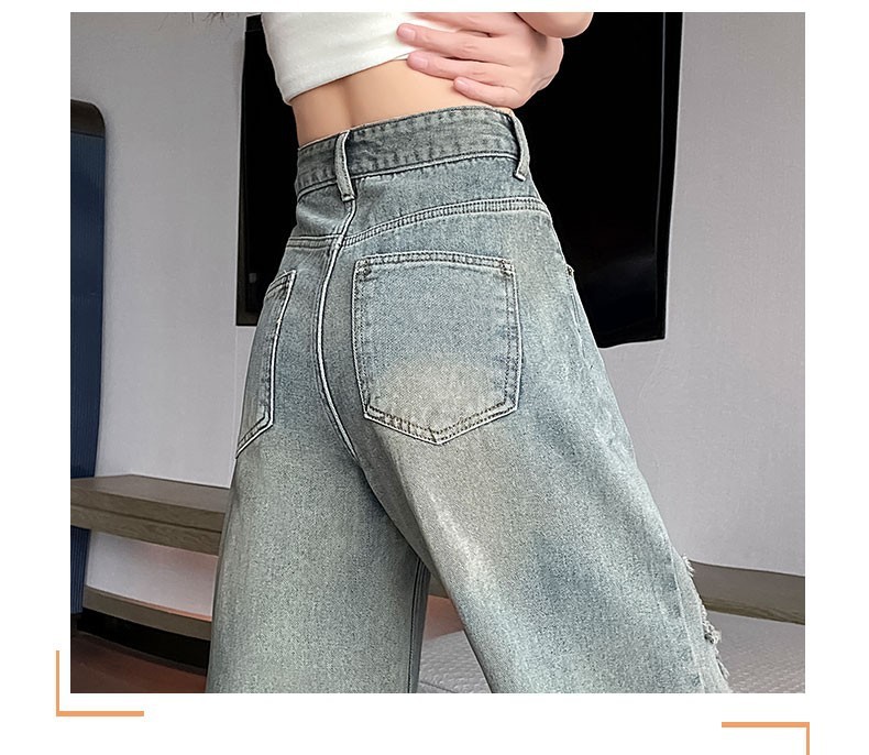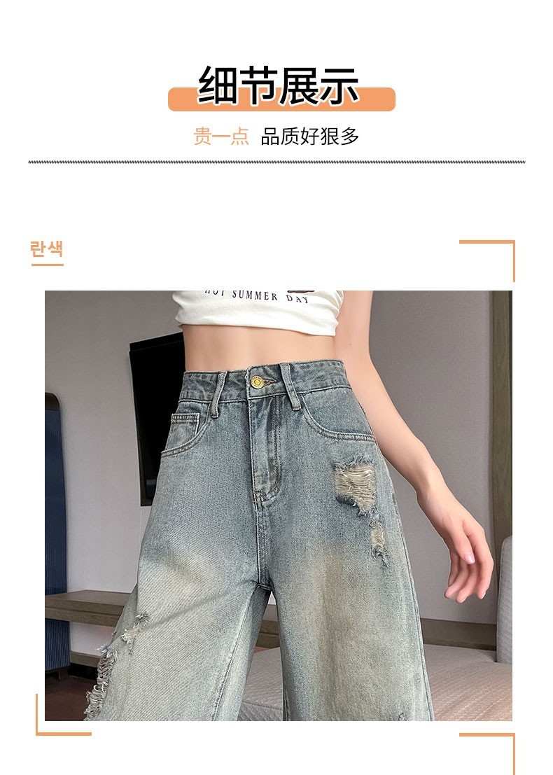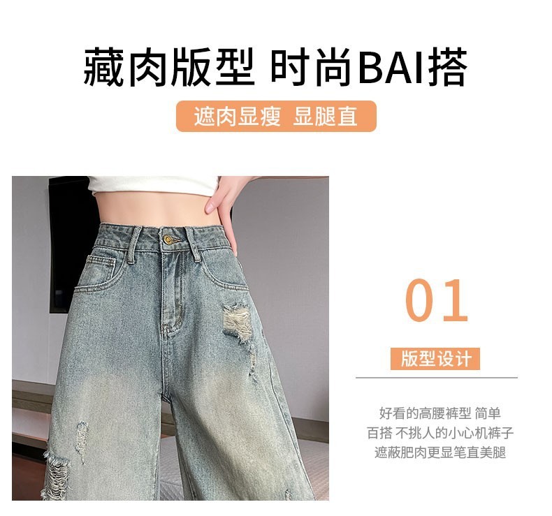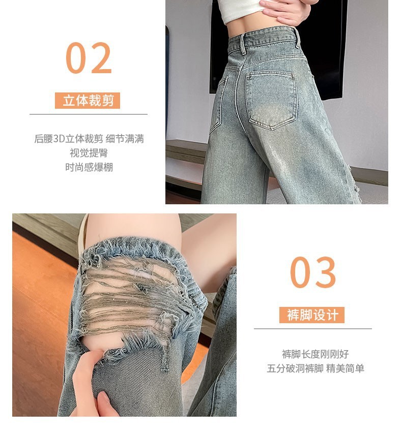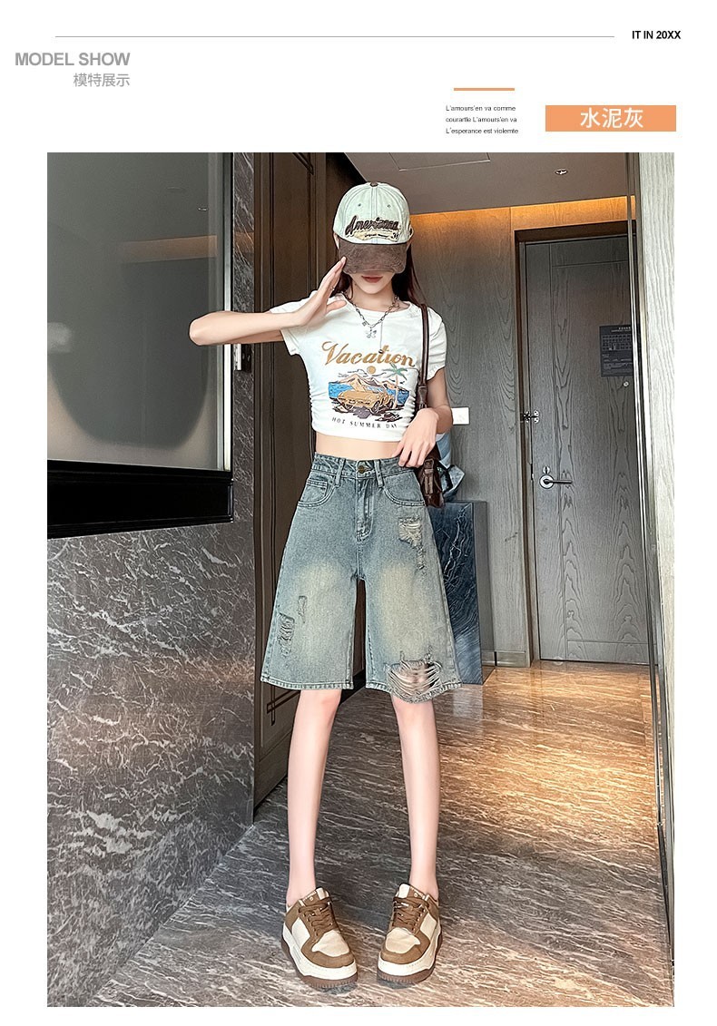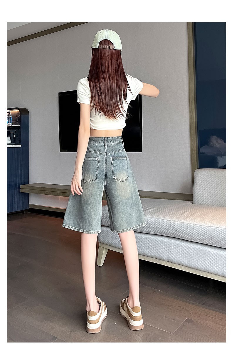 시멘트 애쉬, 5 점 청바지 찢기 여자 2025 년 여름 얇은 느슨한 배 모양의 중간 길이 바지 향수 5 점 반바지스토어 가기