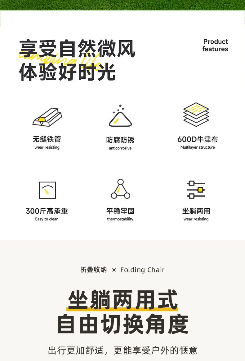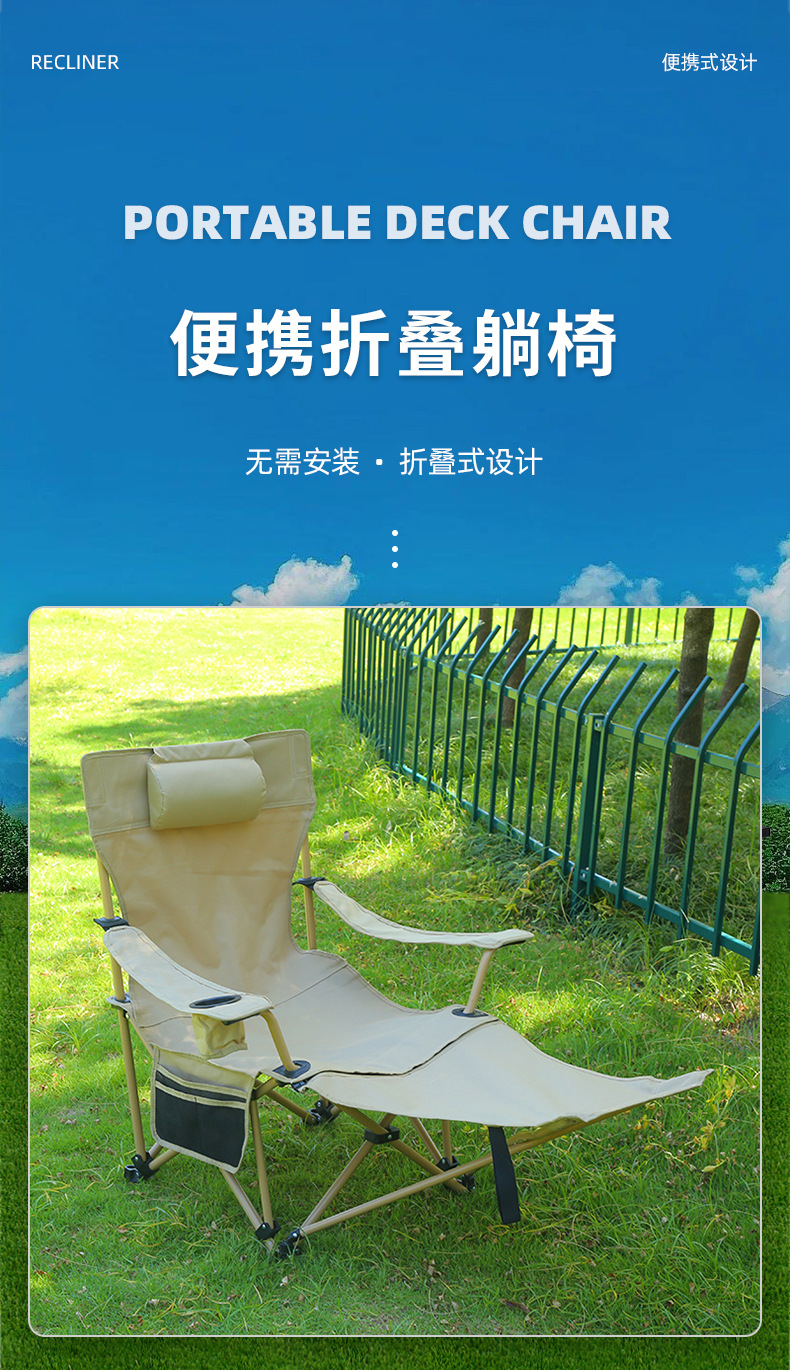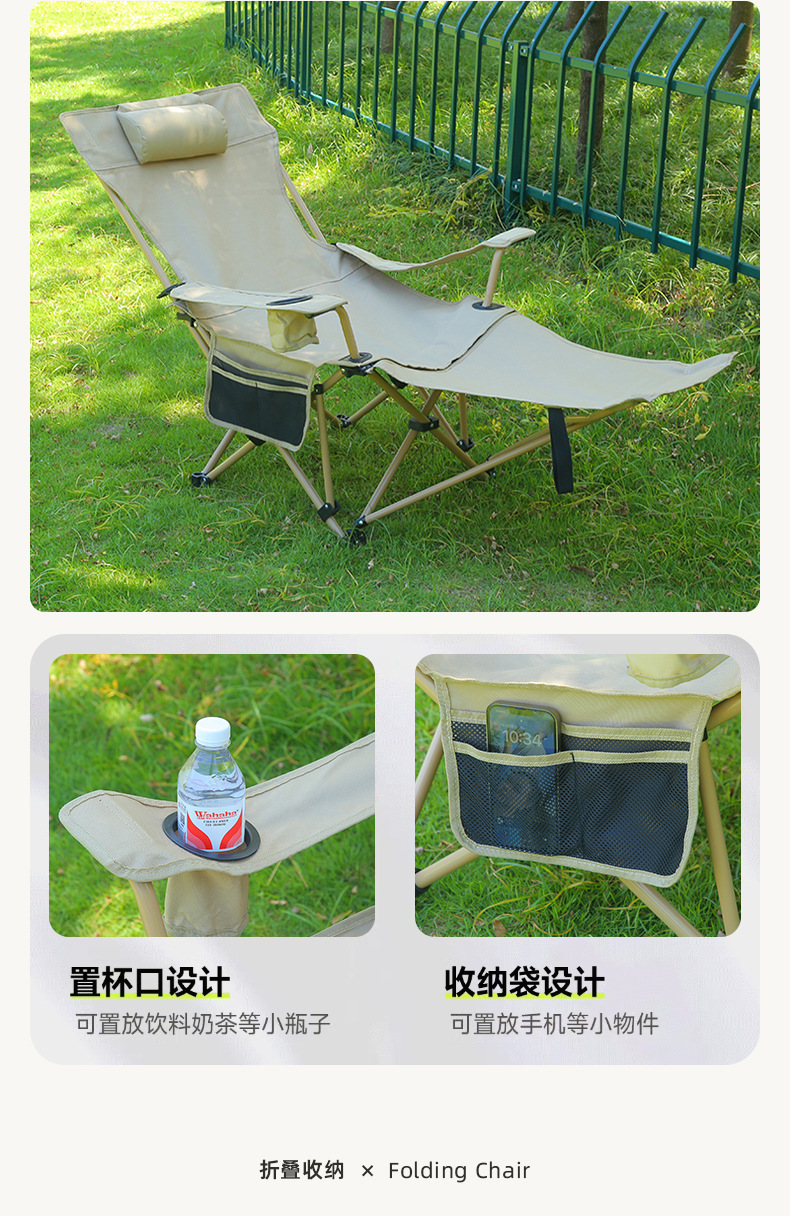야외 접는 리클라이너 캠핑 점심 휴식 접이식 의자 캠핑 휴대용 발판 비치 의자 앉아 이중 목적 낚시 의자