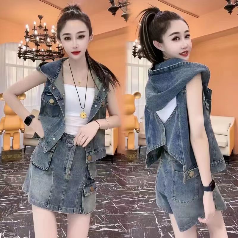 데님 조끼 후드 2025 여성 인기 여름 백리스 스타일 한국 스타일 슬림 패션 트렌디 라이트 풀오버