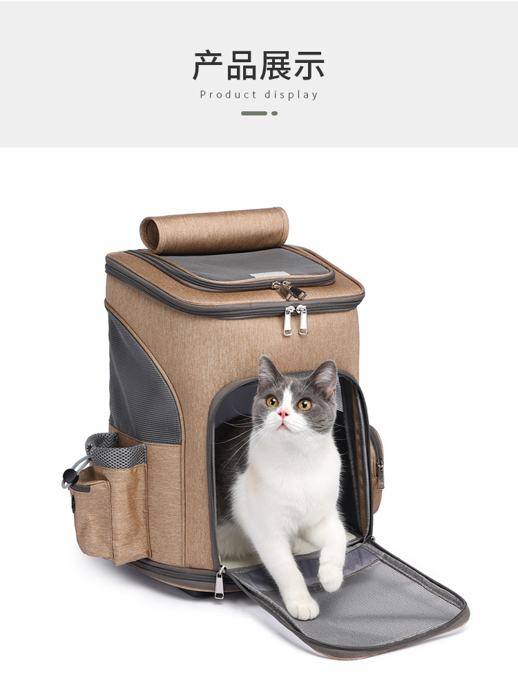 휴대용 대용량 접이식 애완 동물 가방 통기성 고양이 트롤리 케이스 야외 이중 사용 배낭 애완 동물 배낭