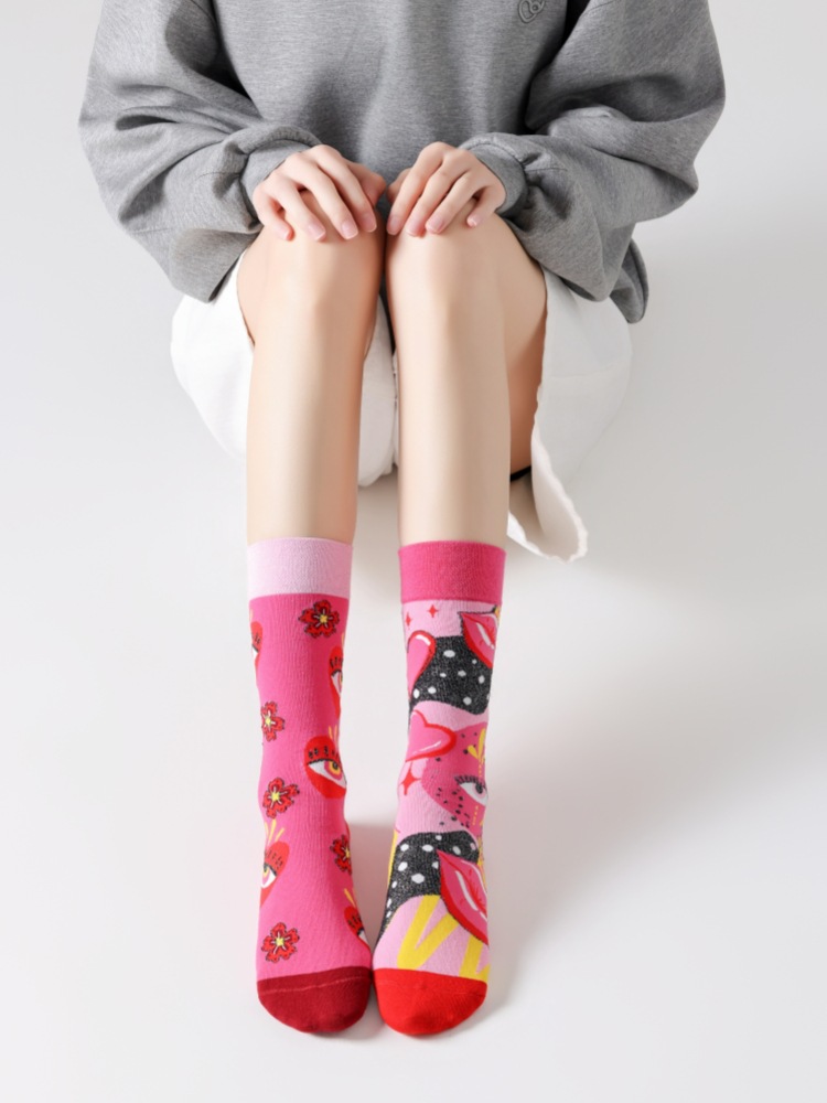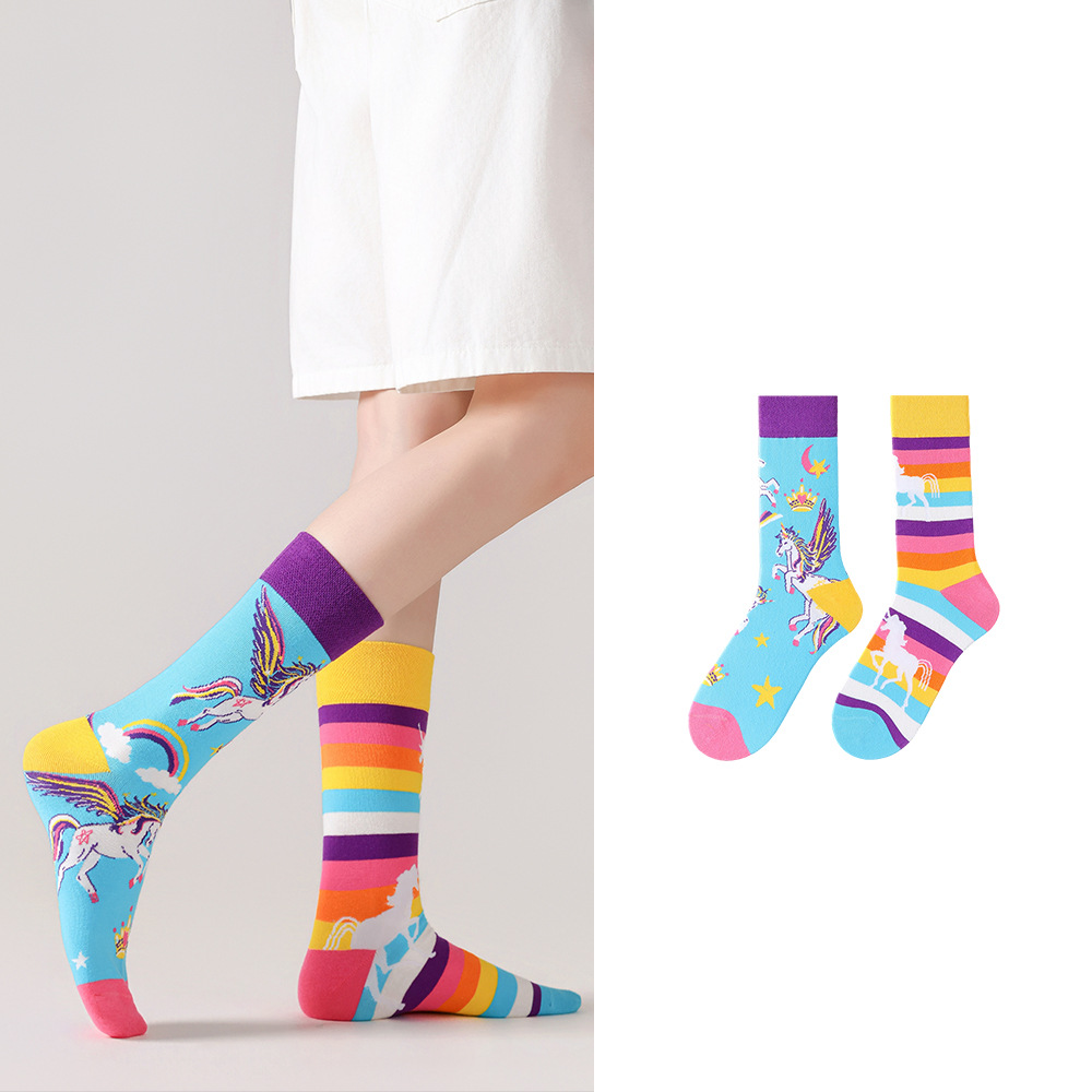 원래 새로운 AB 양말 남성과 여성 커플 코튼 양말 힙합 스트리트 스포츠 양말 비대칭 만다린 오리 중형 스타킹