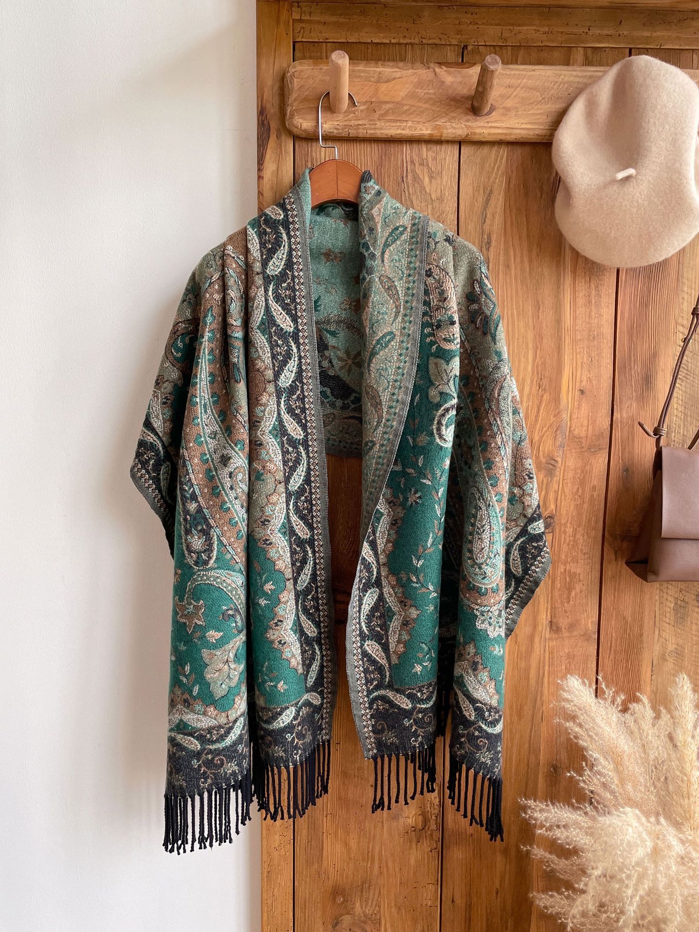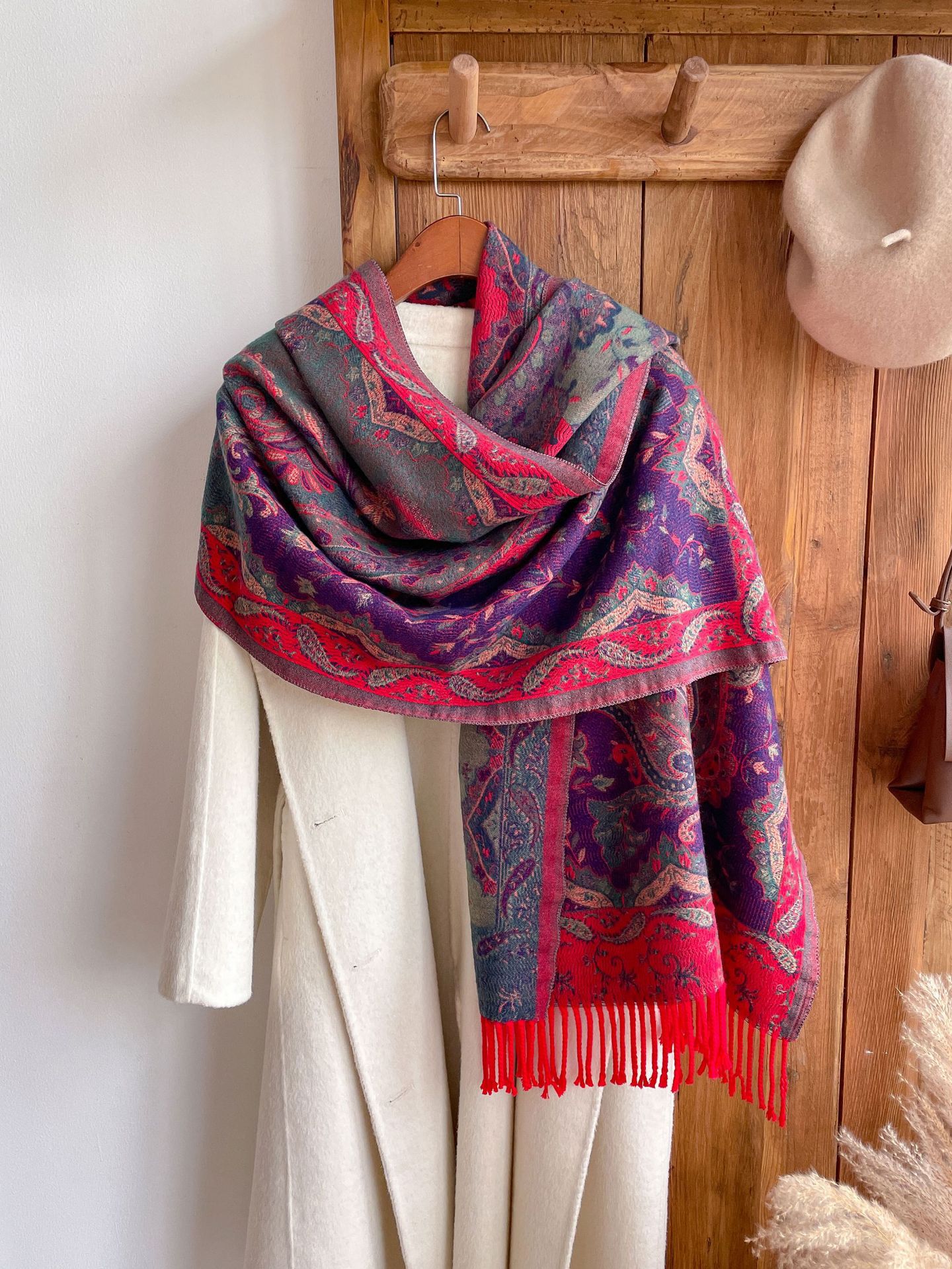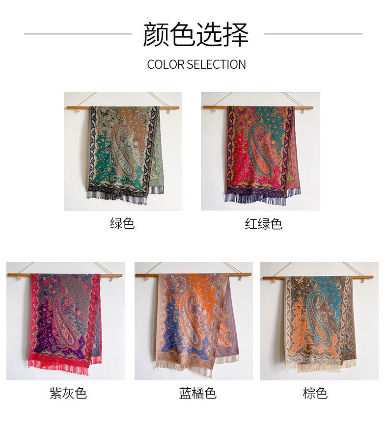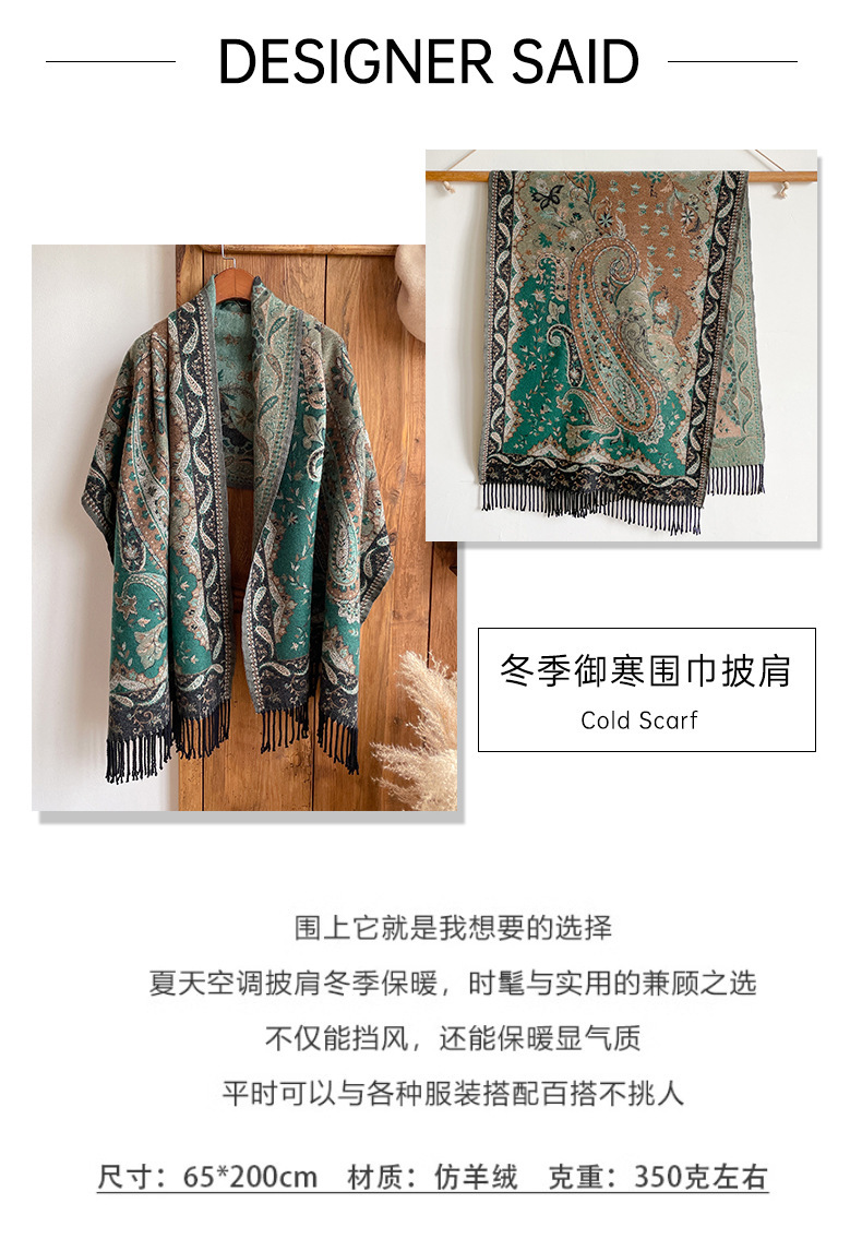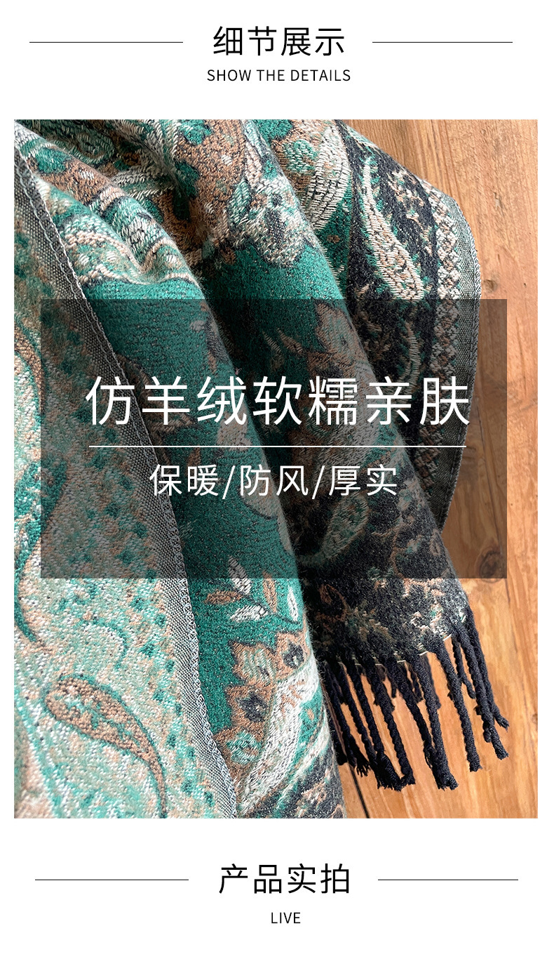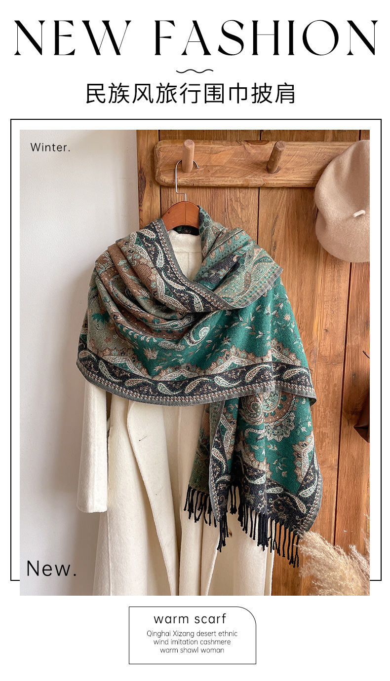 빈티지 캐슈 윈난 티베트 관광 큰 목도리 민족 스타일 캐시미어 망토 가을과 겨울 여성을위한 두꺼운 따뜻한 스카프